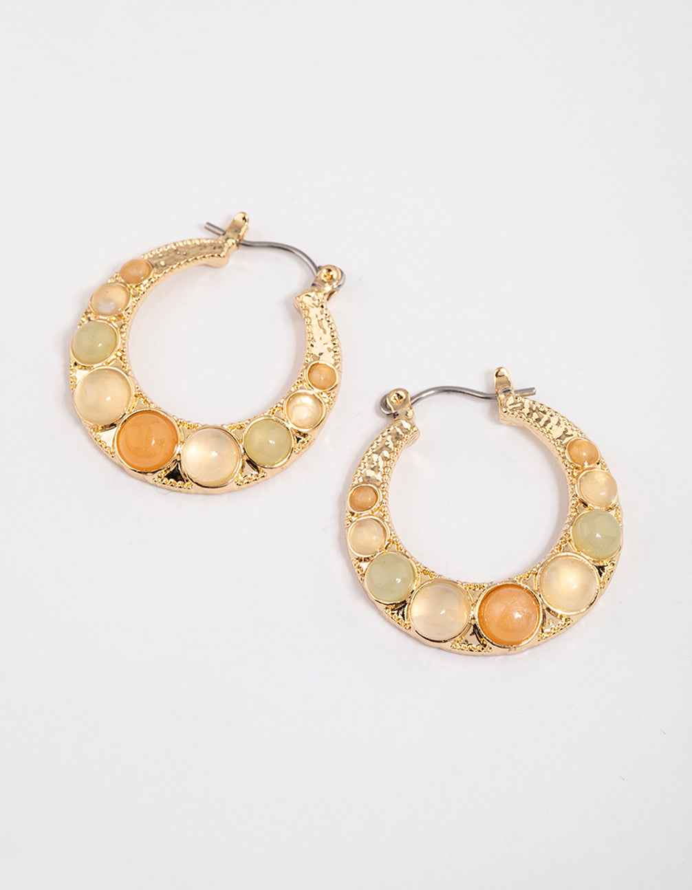 Gold Round Stone Hoop Earrings