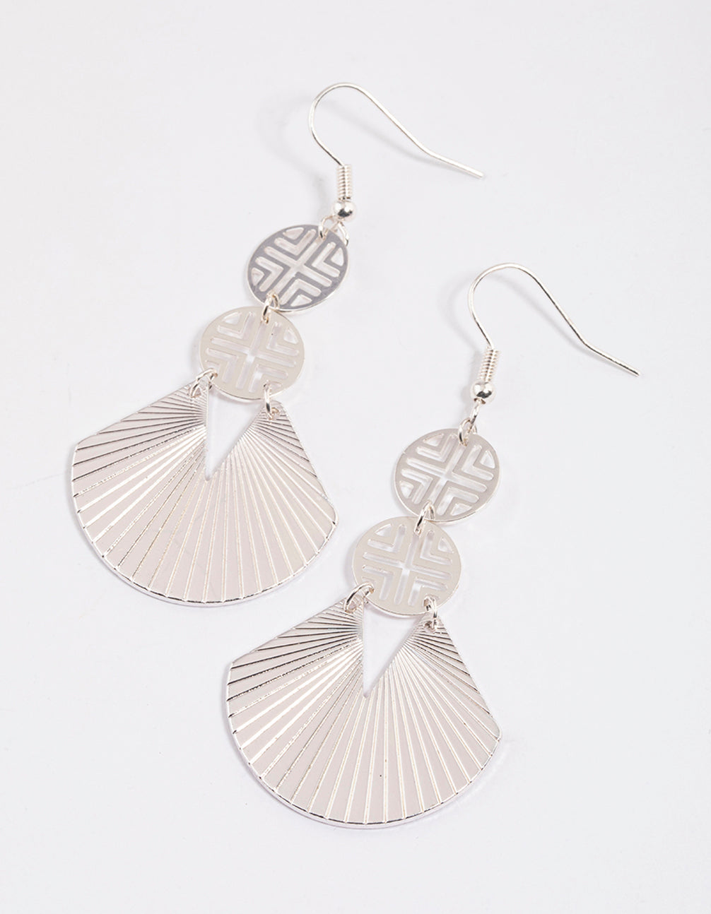 Silver Geometric Disc Fan Drop Earrings