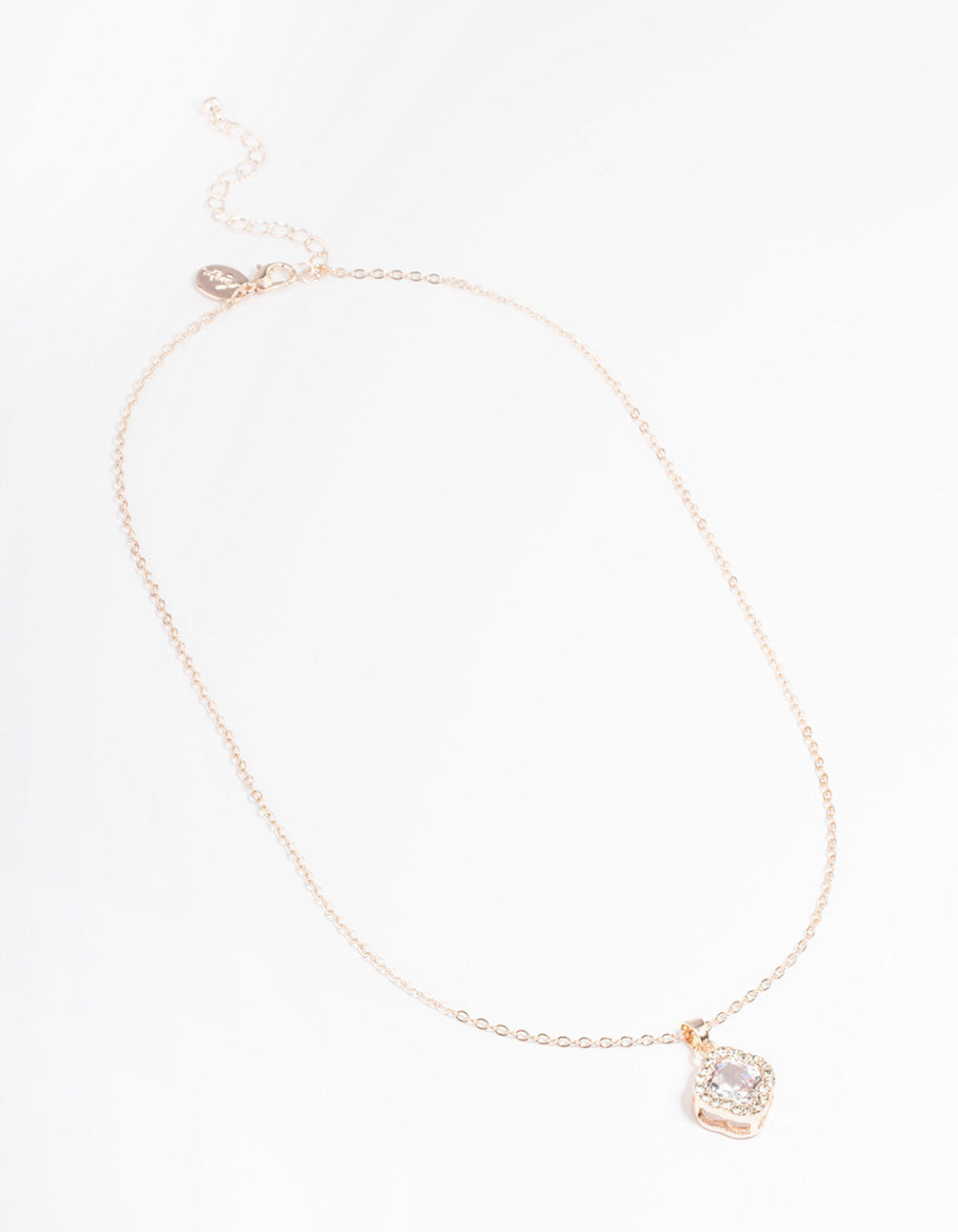 Rose Gold Cubic Zirconia Diamante Clover Necklace