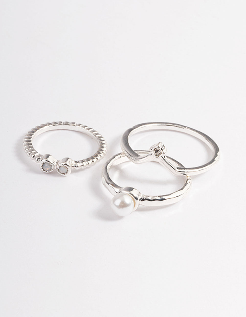 Pair our silver-toned pack of three nesting rings with a silver statement ring for added dimension.
