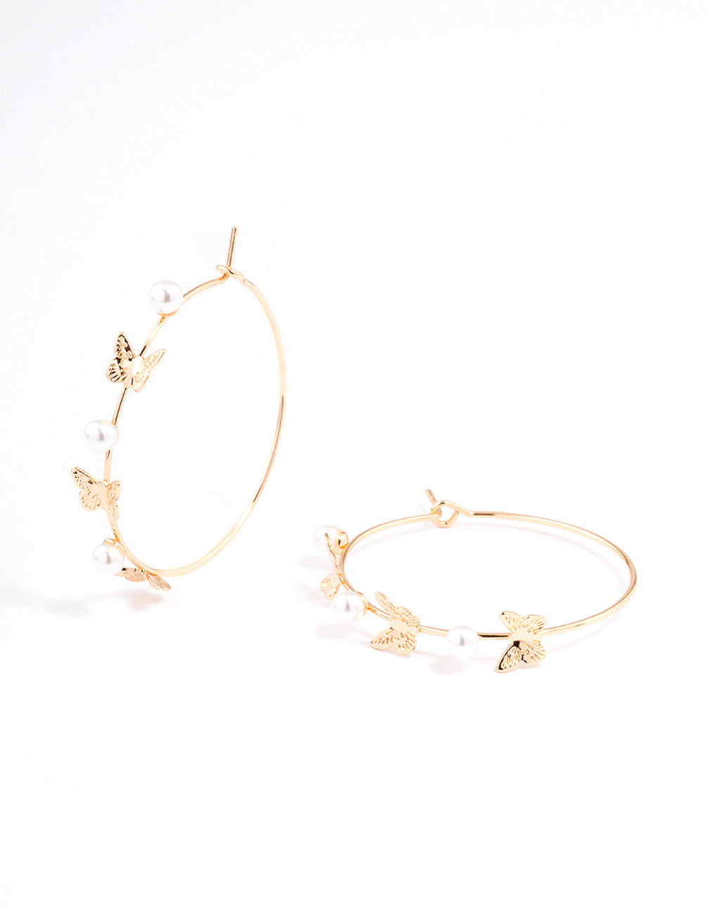 Gold Dainty Butterfly & Pearl Hoop Earrings
