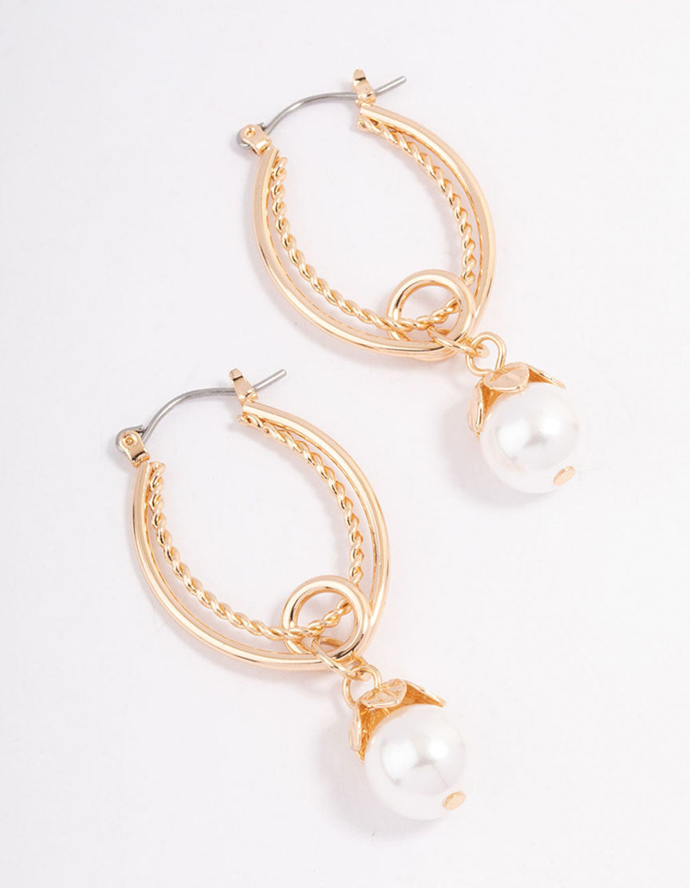 • Gold Ornate Pearl Drop Hoop Earrings - link has visual effect only