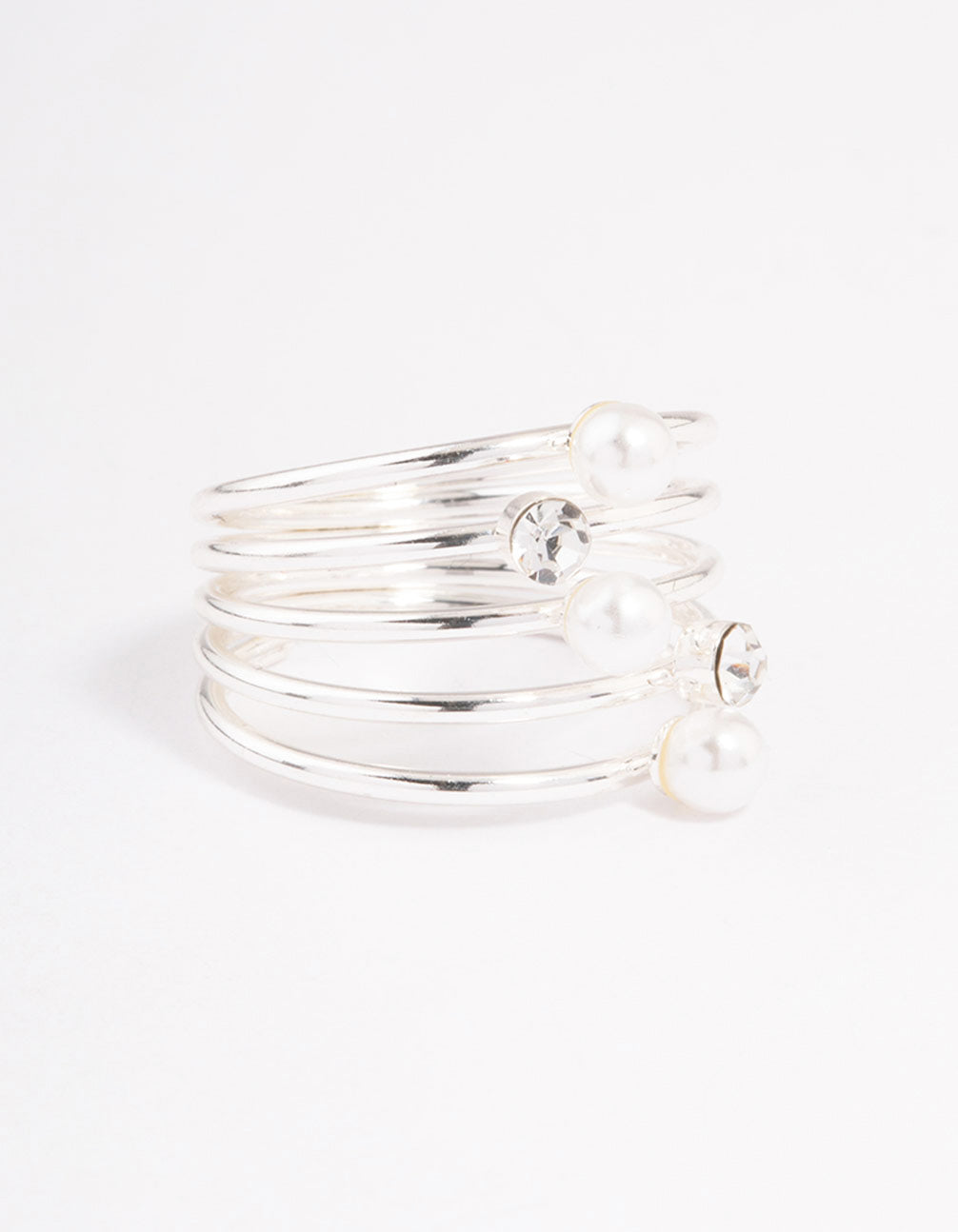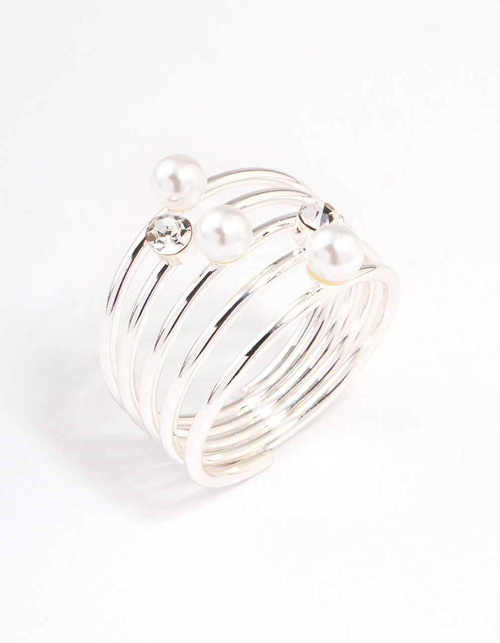 Silver Diamante & Pearl Twisted Ring
