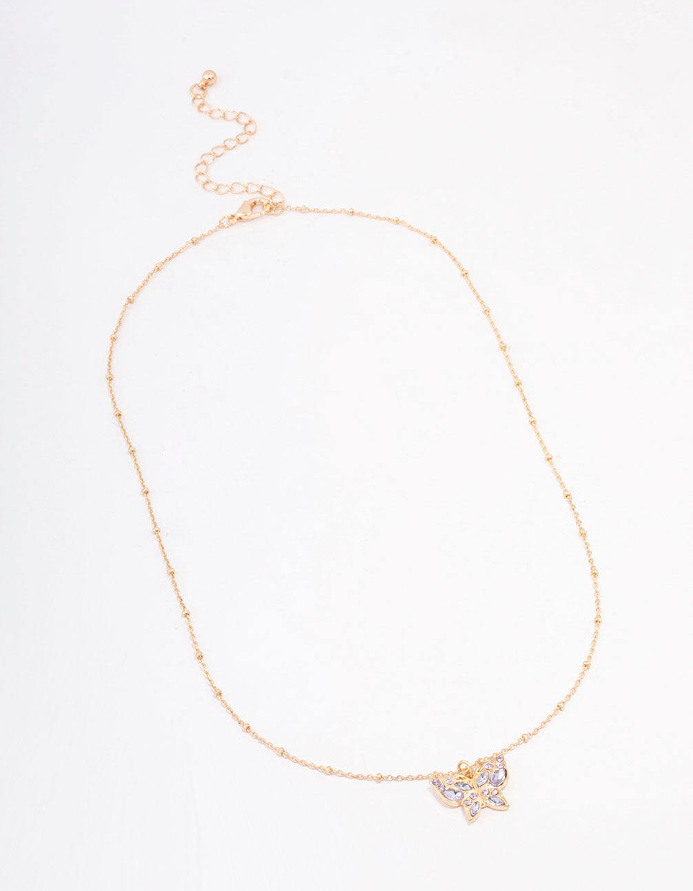 Gold Pave Ball Chain Butterfly Necklace
