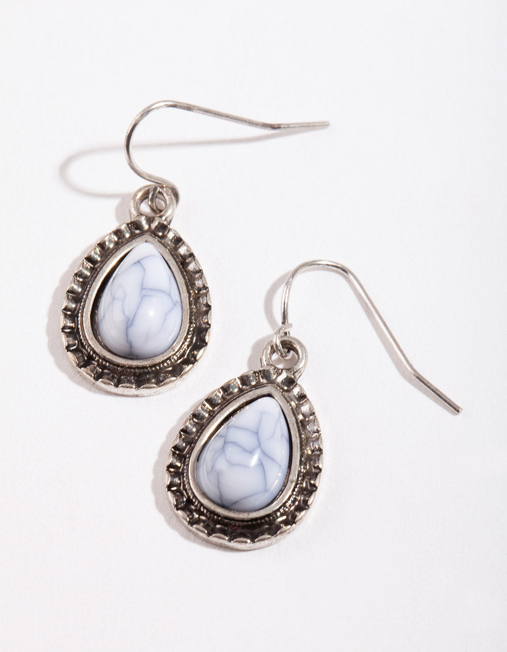 Decorate your ears with our antique silver toned etched tear simple drop earrings.
