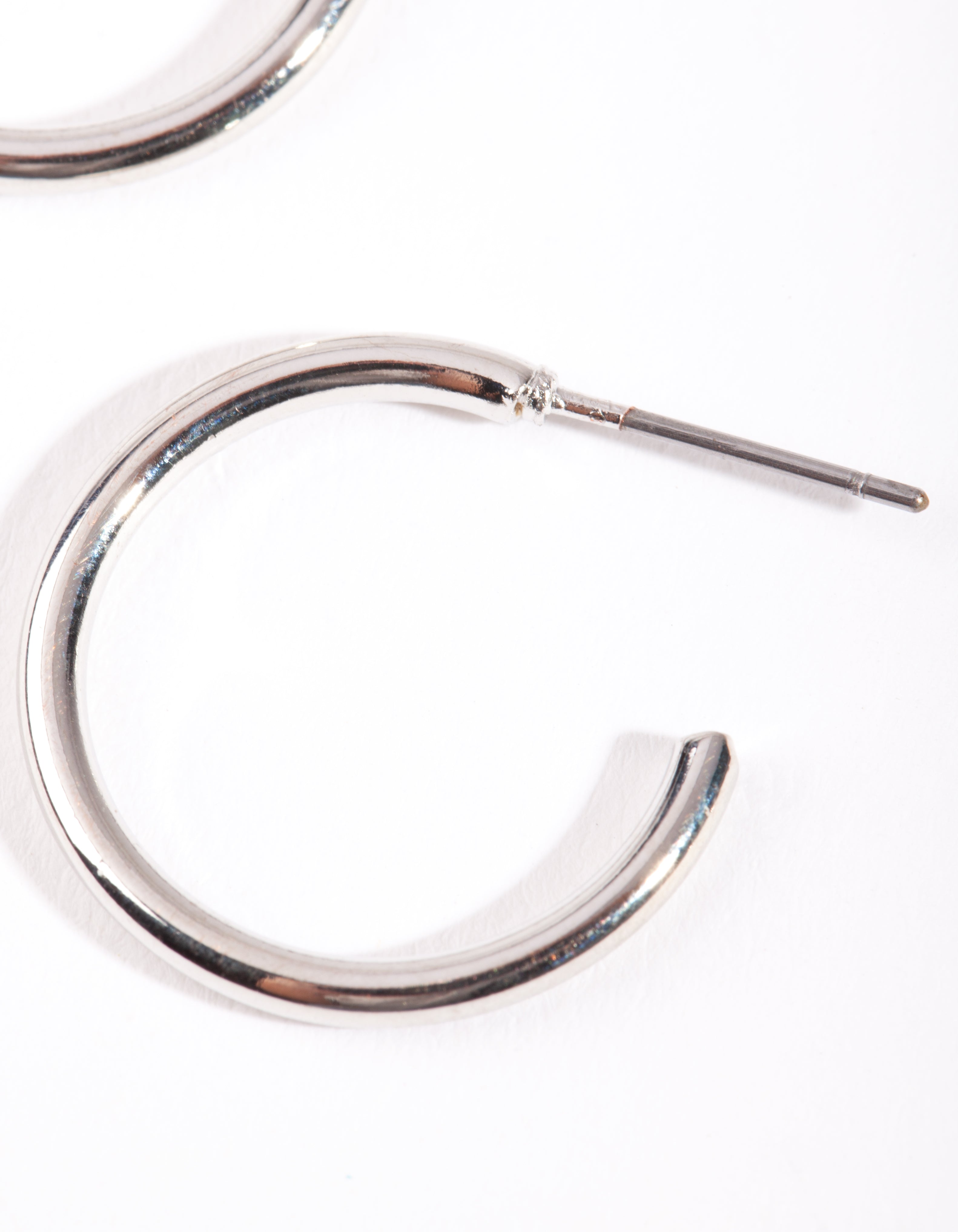 A pair of plain silver-tone simple hoop earrings