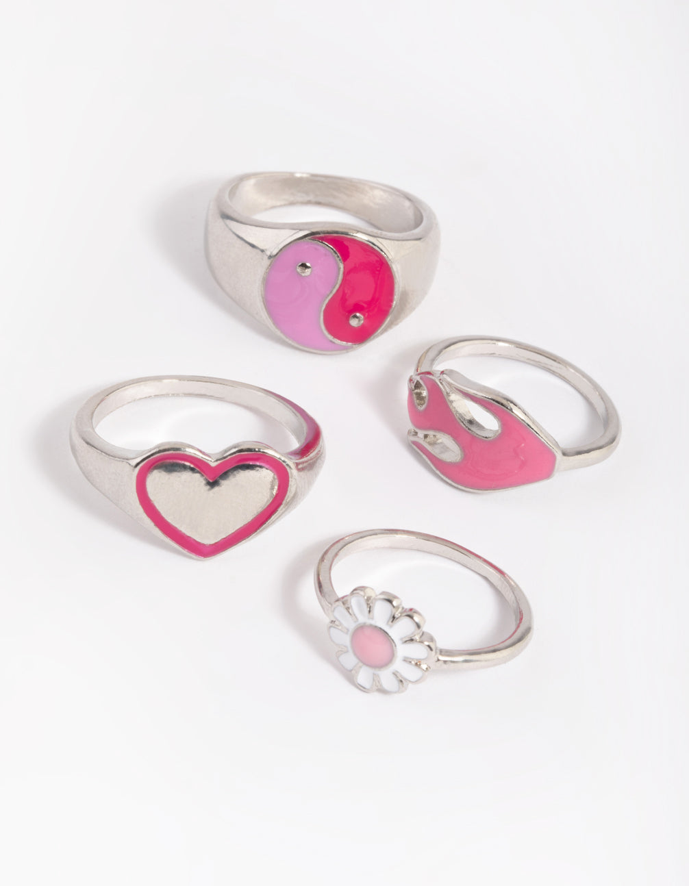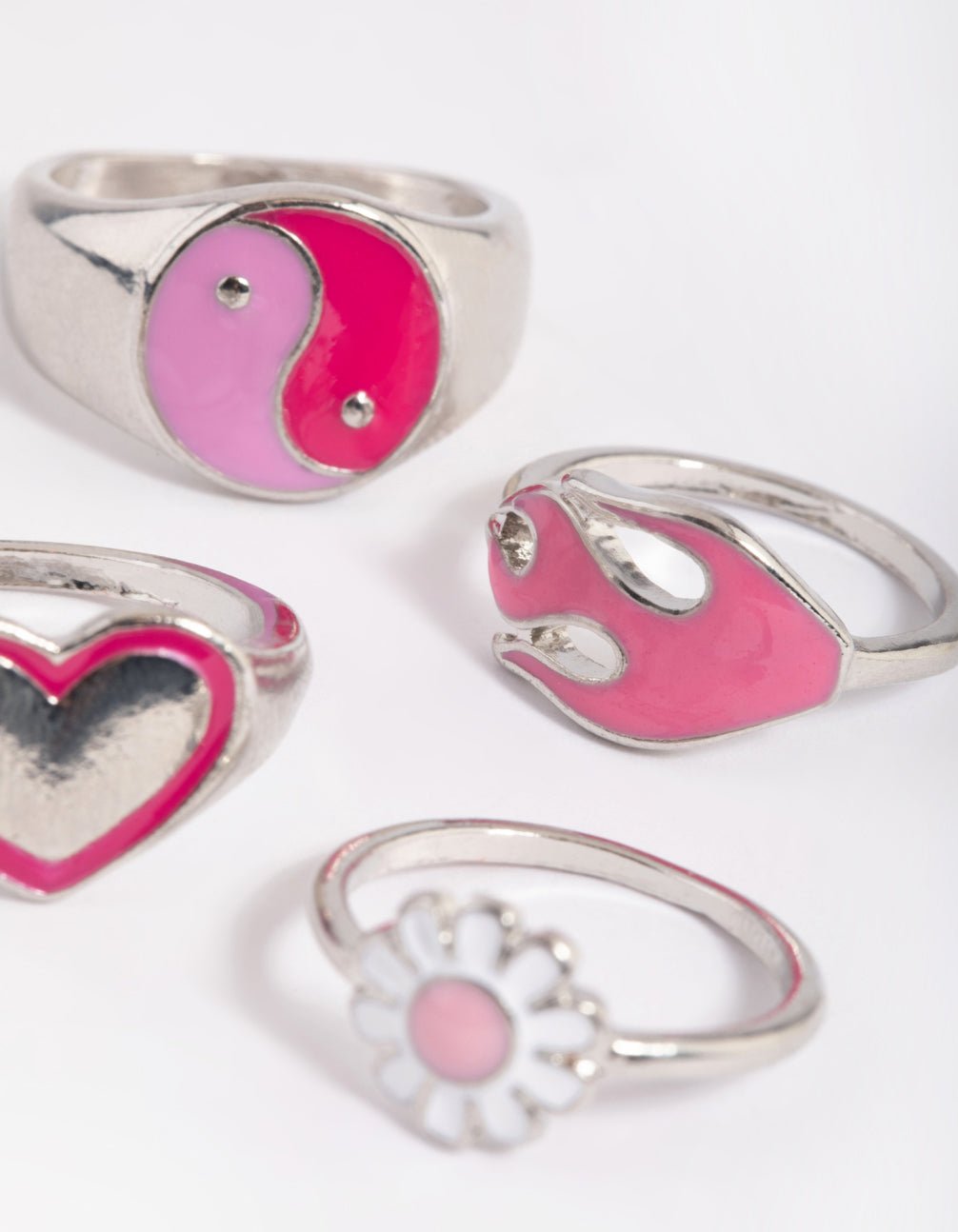 What's the 411? The 90s are back, baby! Pump the positivity with our funky ring packs. Stack them all together for maximum impact!