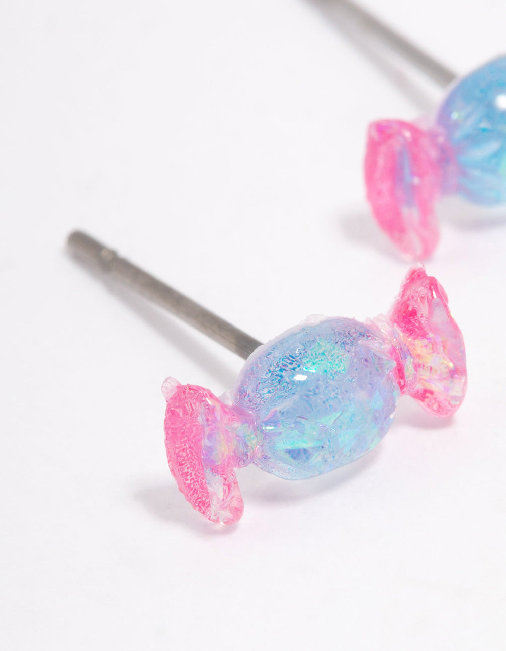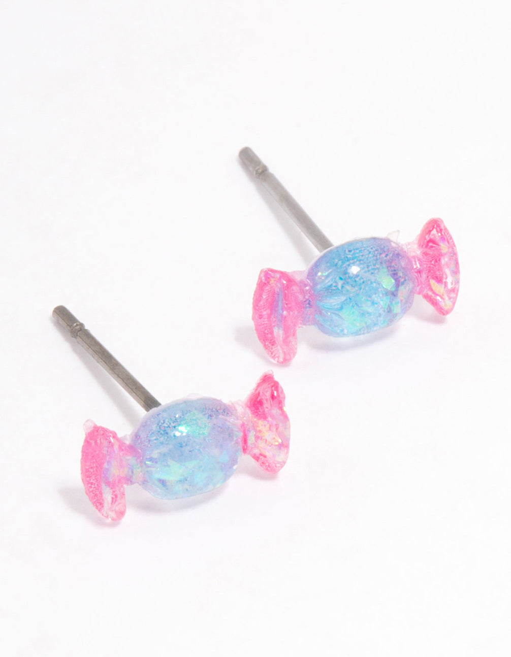 Acrylic Pink & Blue Holographic Lollipop Stud Earrings