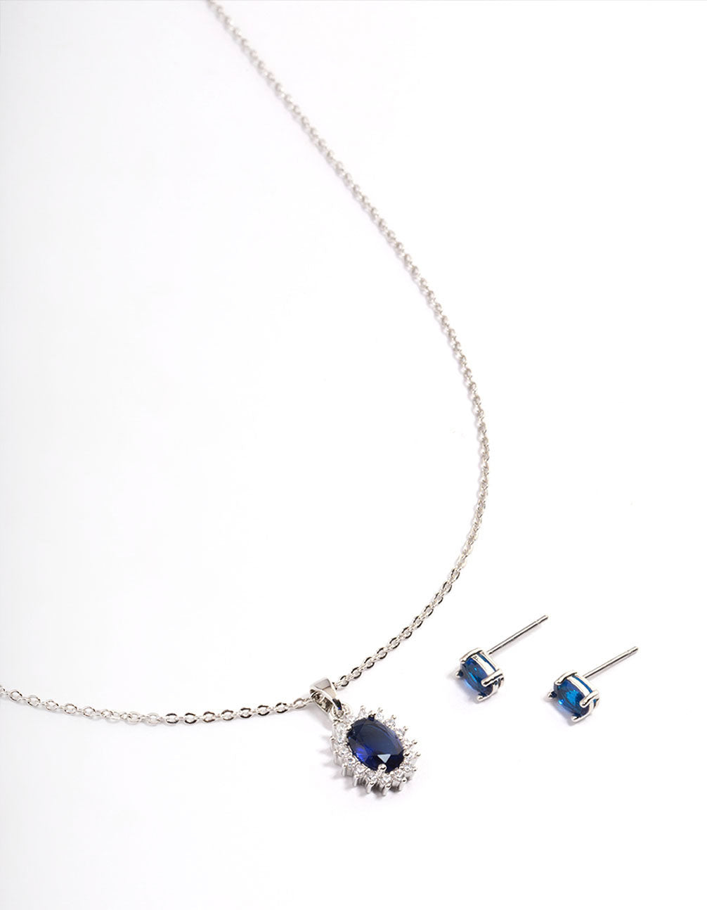 Silver Cubic Zirconia Oval Halo Earrings & Necklace Set