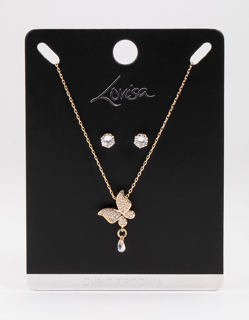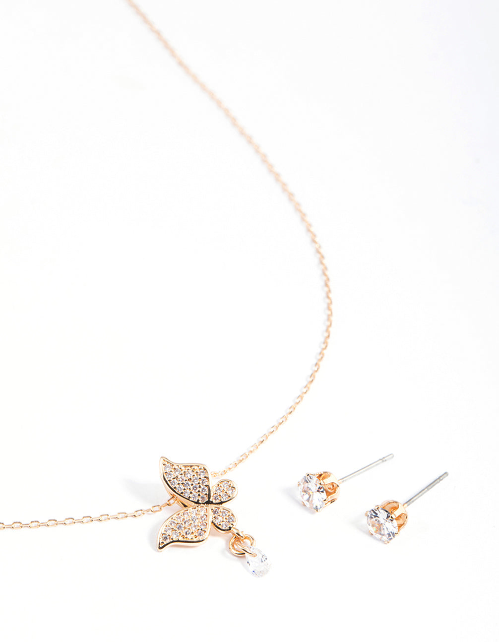 Gold Cubic Zirconia Butterfly Dangle Earrings & Necklace Set Gold Cubic Zirconia Butterfly Dangle Earrings & Necklace Set Gold Cubic Zirconia Butterfly Dangle Earrings & Necklace Set