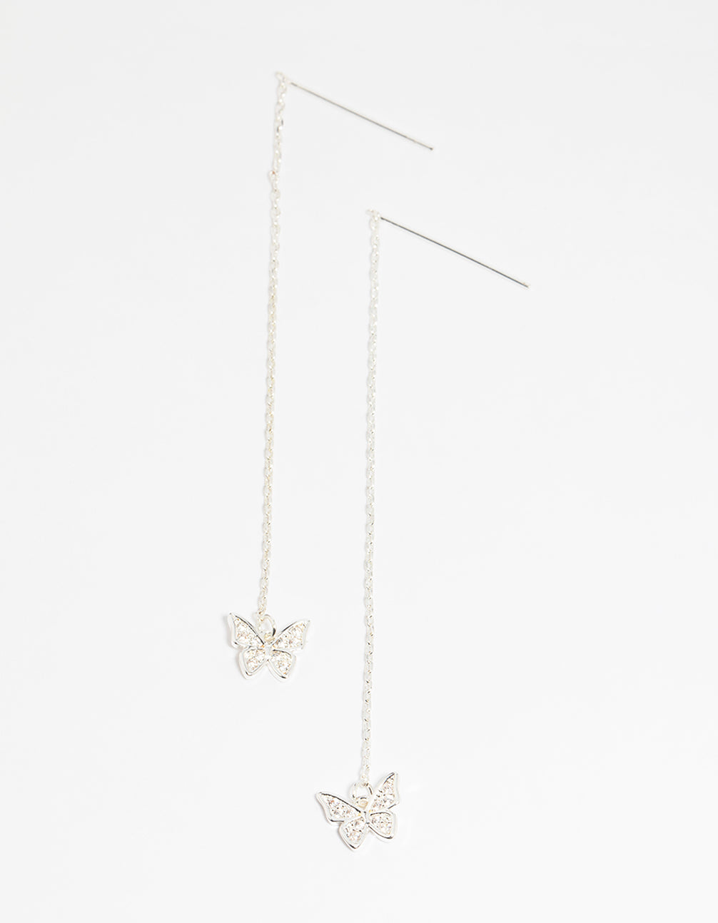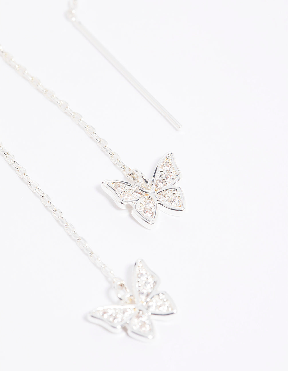 Silver Cubic Zirconia Butterfly Thread Through Earrings