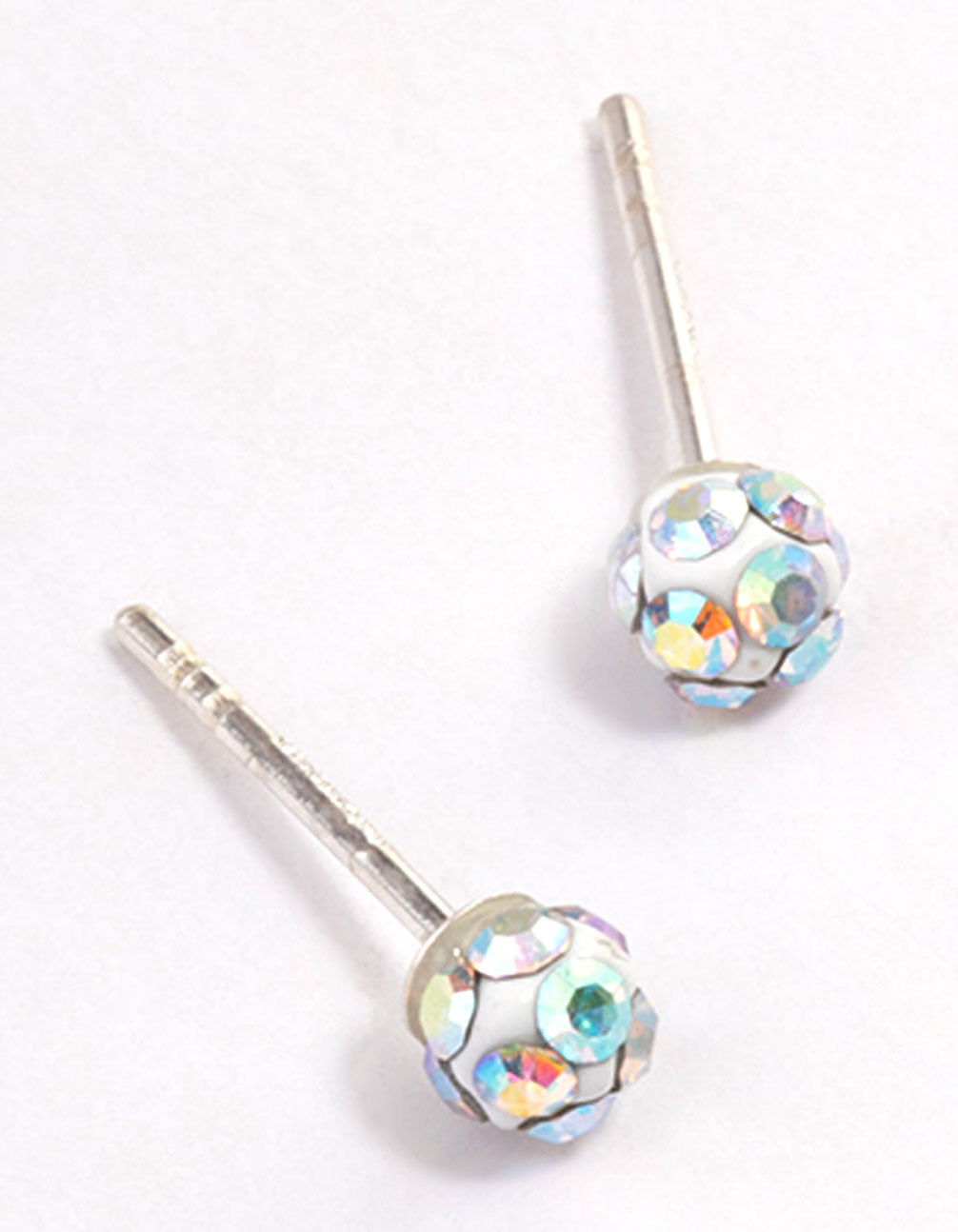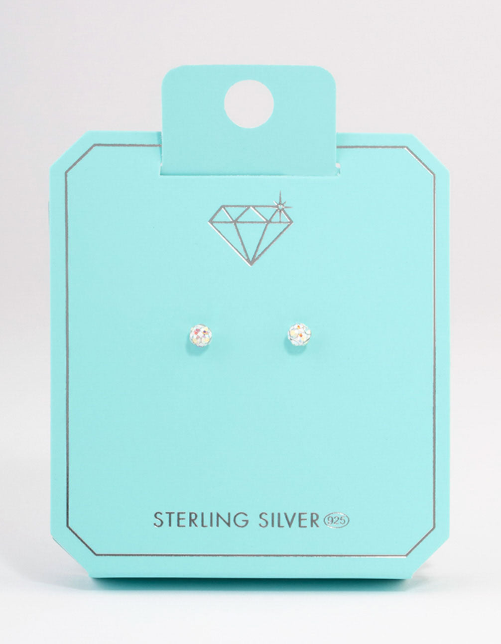 Sterling Silver 4mm Pave Ball Stud Earrings