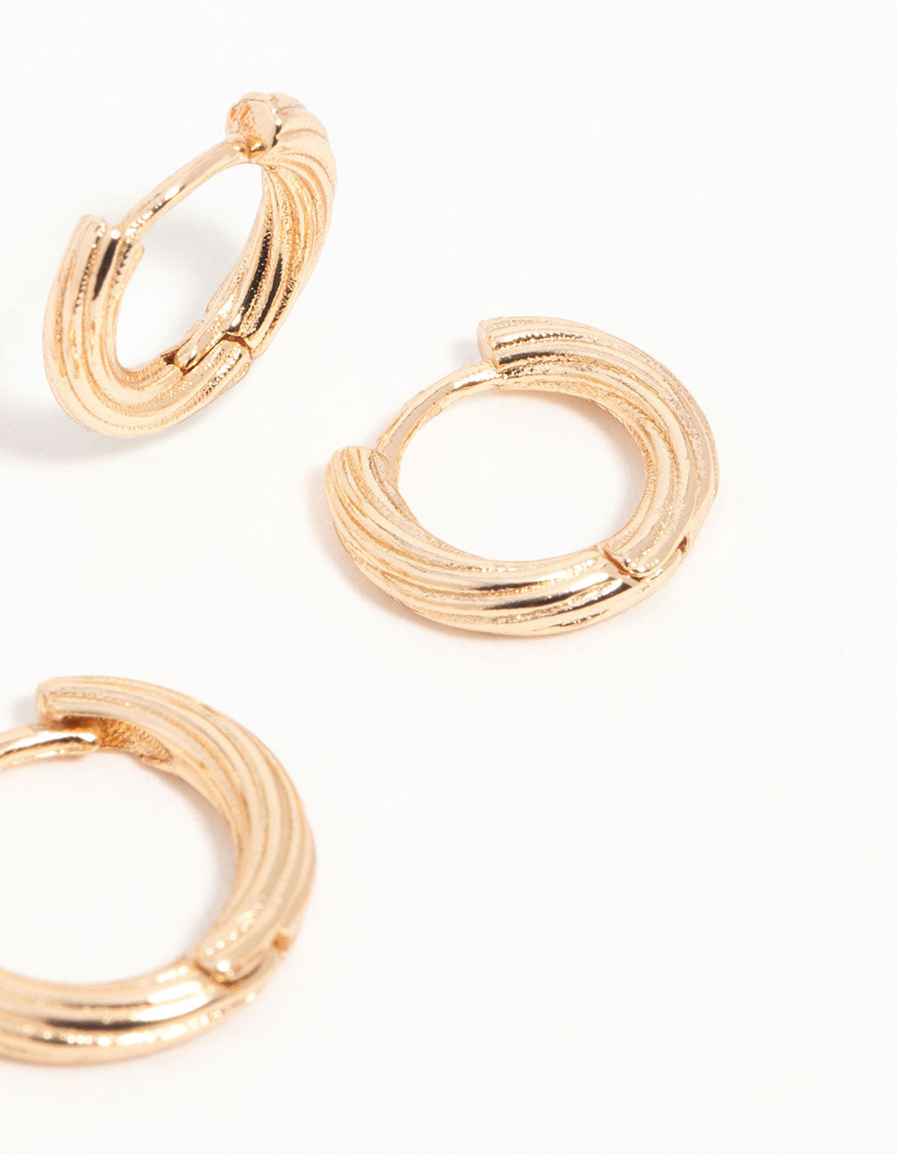 Antique Gold Graduating Twisted Hoop Earrings 3-Pack
