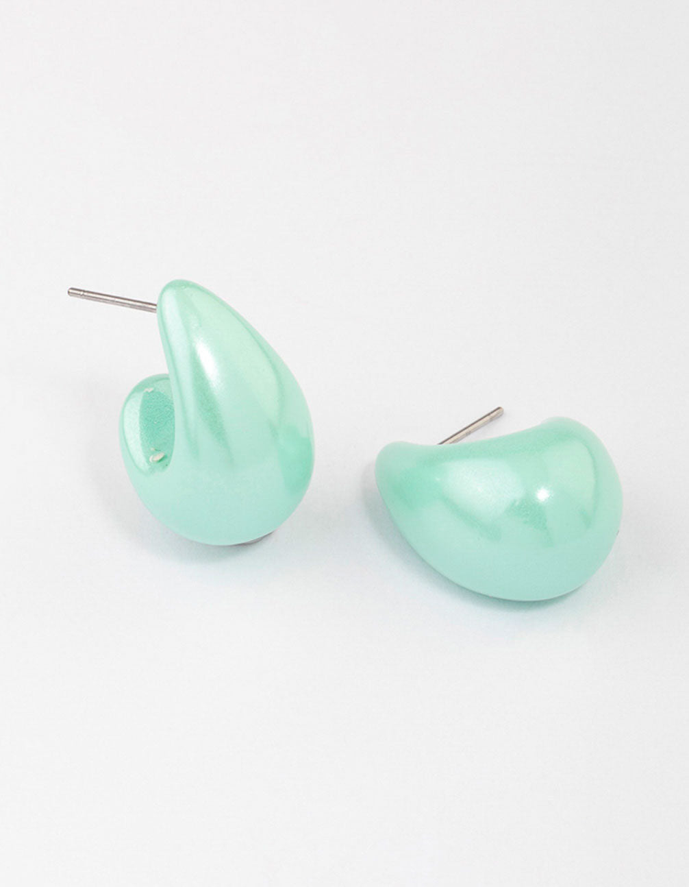 Teardrop earrings are the silhouette of the season! Style the trend yourself with these playful, aqua-coloured huggie hoops.