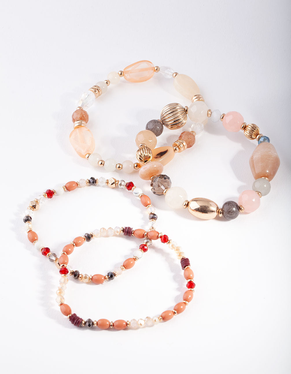 Gold Multi Neutral Bead Bracelet 4-Pack