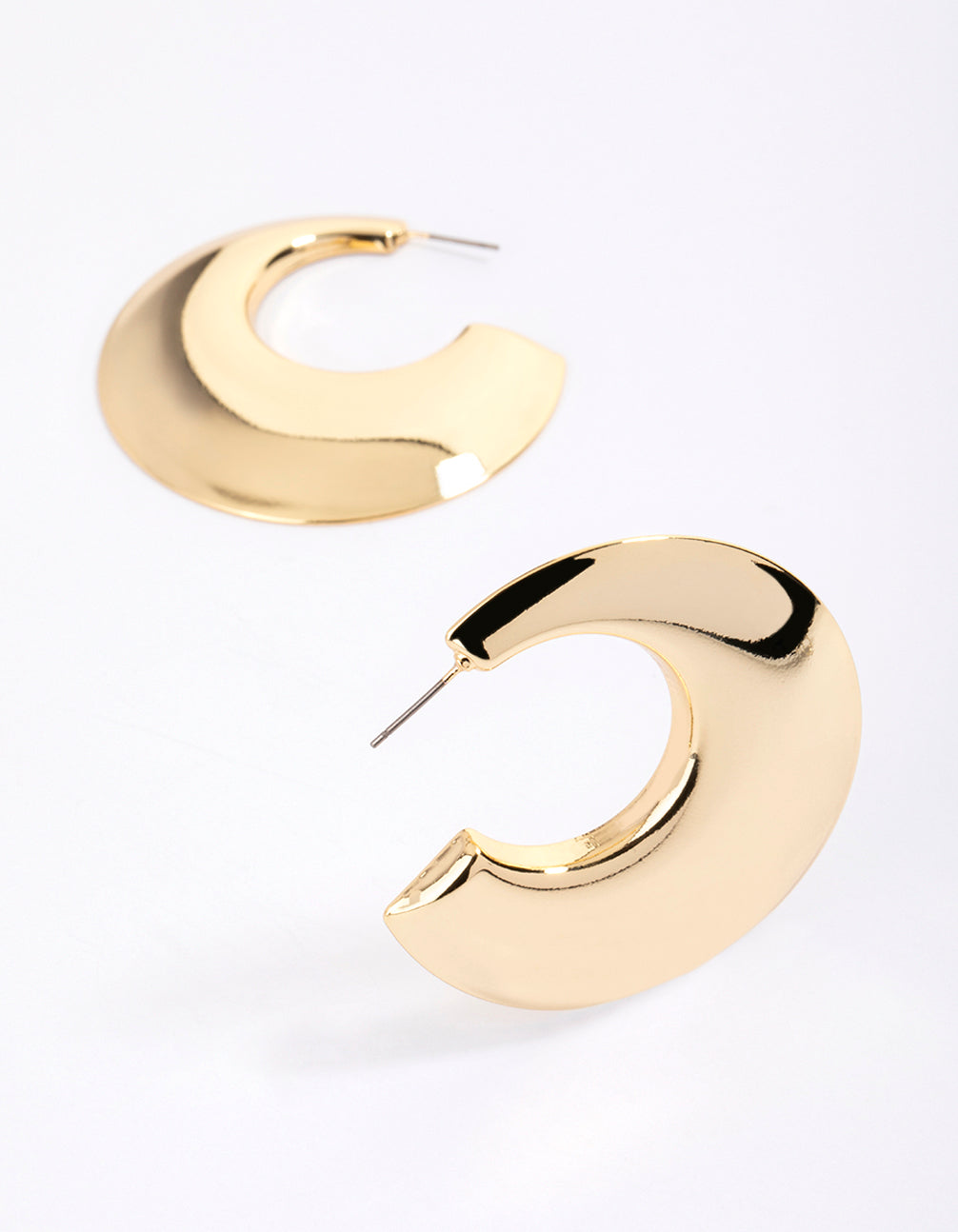 Gold Plated Brass Chubby Disc Hoop Earrings
