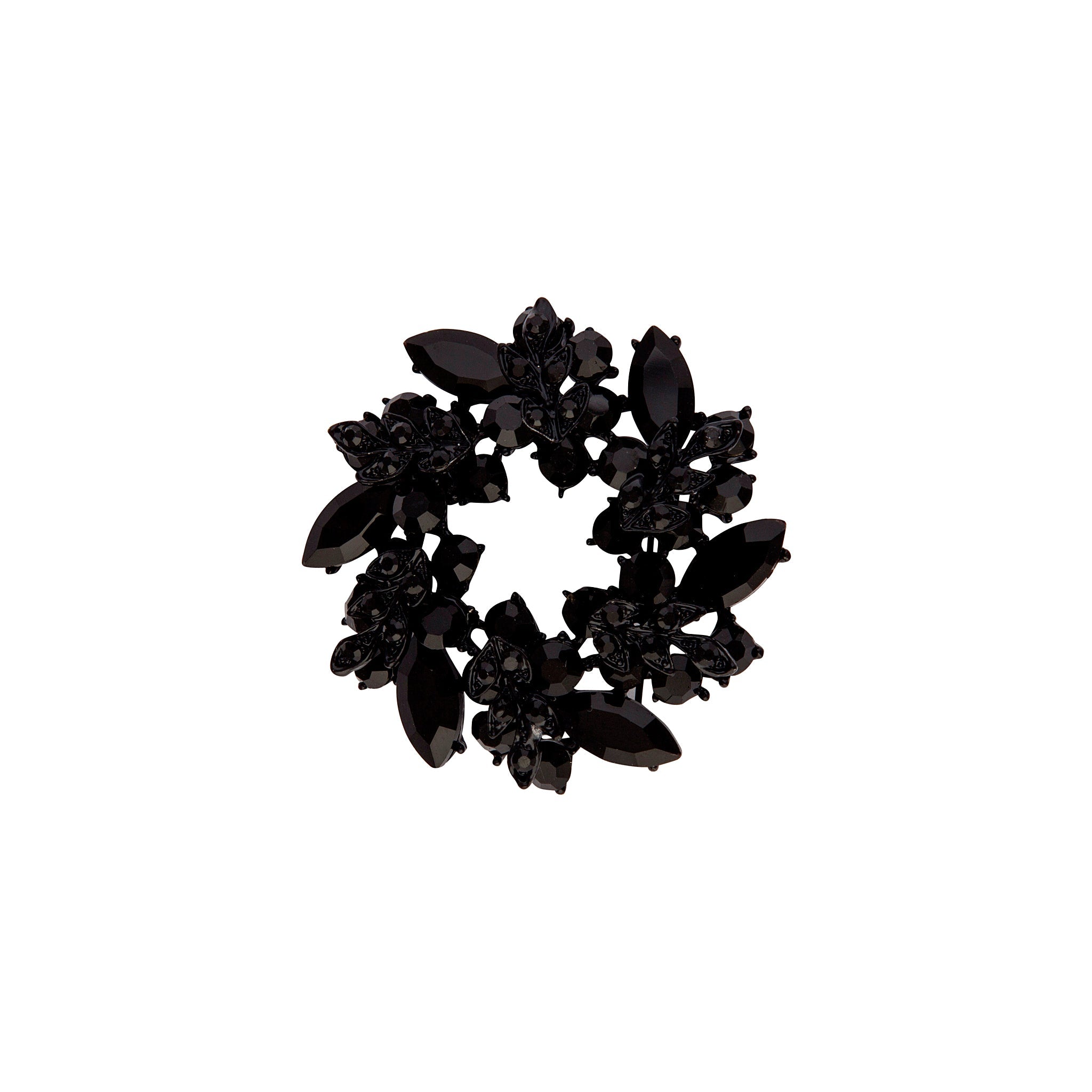 The brooch is the most versatile accessory you can own. This must-have style in a round shape with black jewels can be pinned to bags, shoes, clothes and turbans for a seriously on-trend look.