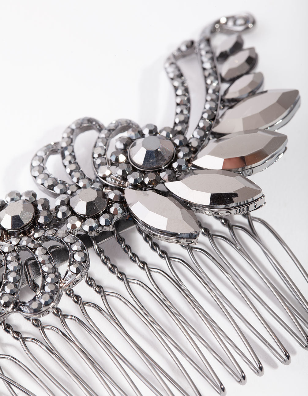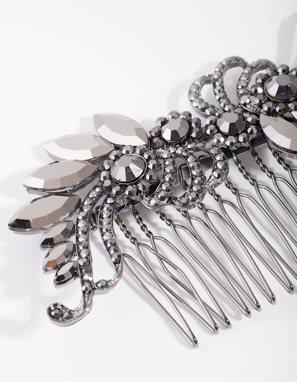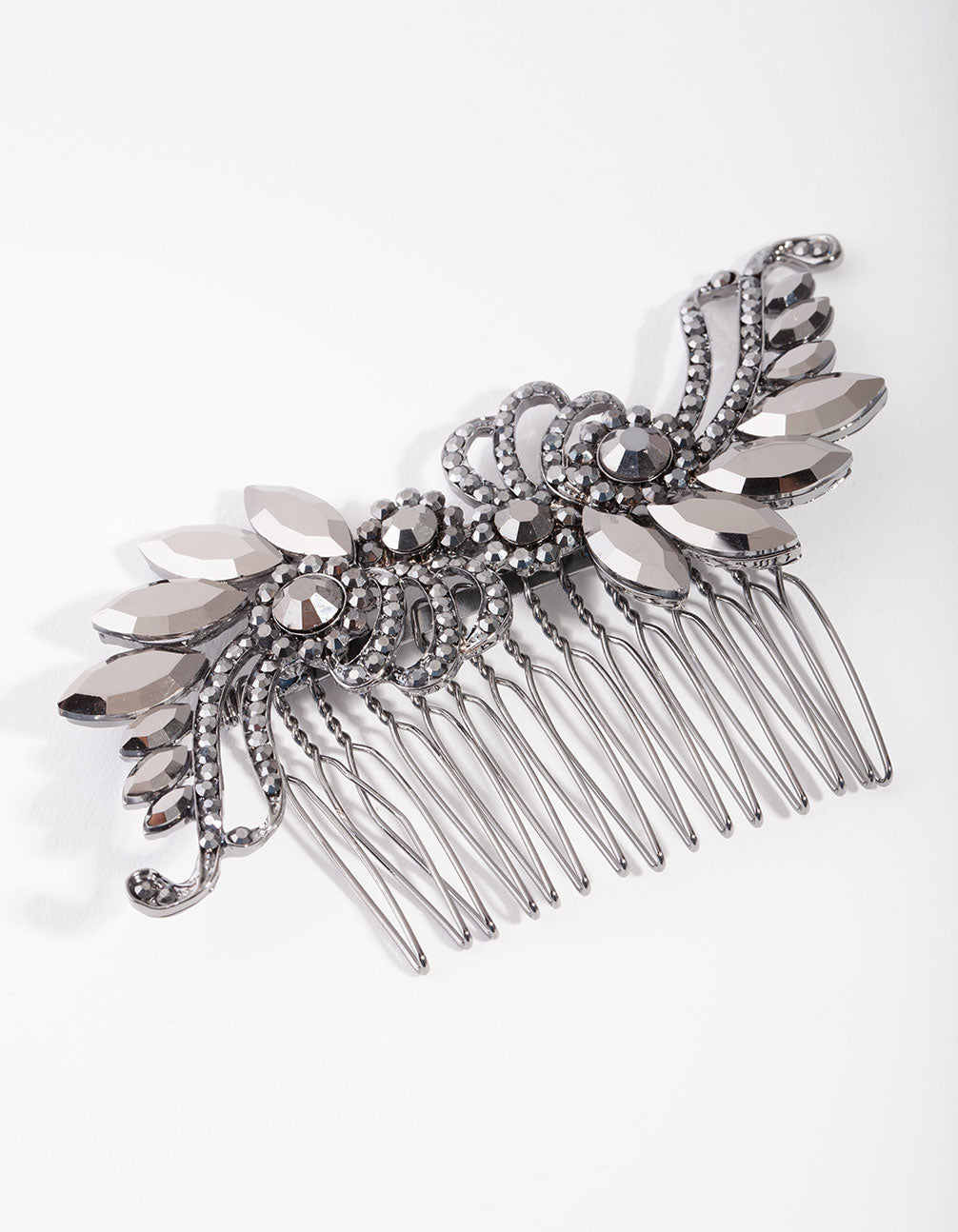 Add some luxury to your outfits by experimenting with statement hair pieces and combs. This stunning matte black comb features a gorgeous diamante-encrusted art-deco inspired design. 1920s glamour never goes out of style!