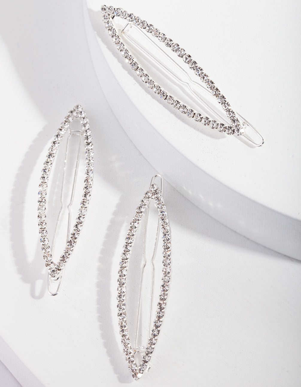Whether you are heading to brunch, a wedding or just wanting to look glamorous for a party, this hair accessory is the perfect way to complete your event ensemble! This trio of clips come with a crystal embellished silver-toned design. These delicate clips are designed to add a subtle sparkle to any hairstyle.