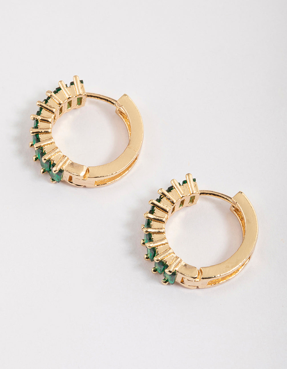 Gold Plated Cubic Zirconia Classic Baguette Hoop Earrings