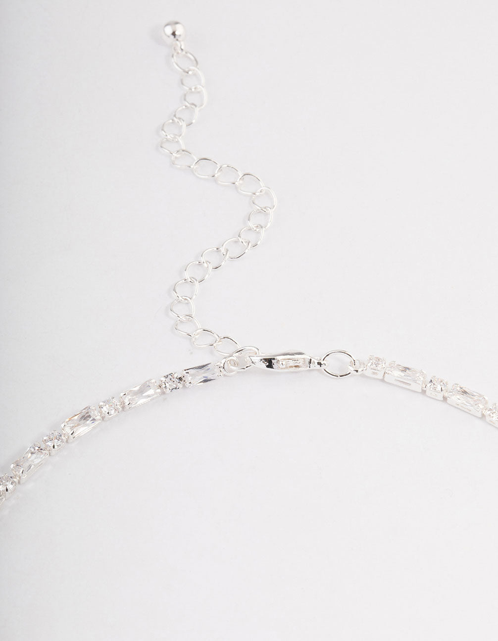 Silver Plated Cubic Zirconia Round & Baguette Tennis Necklace