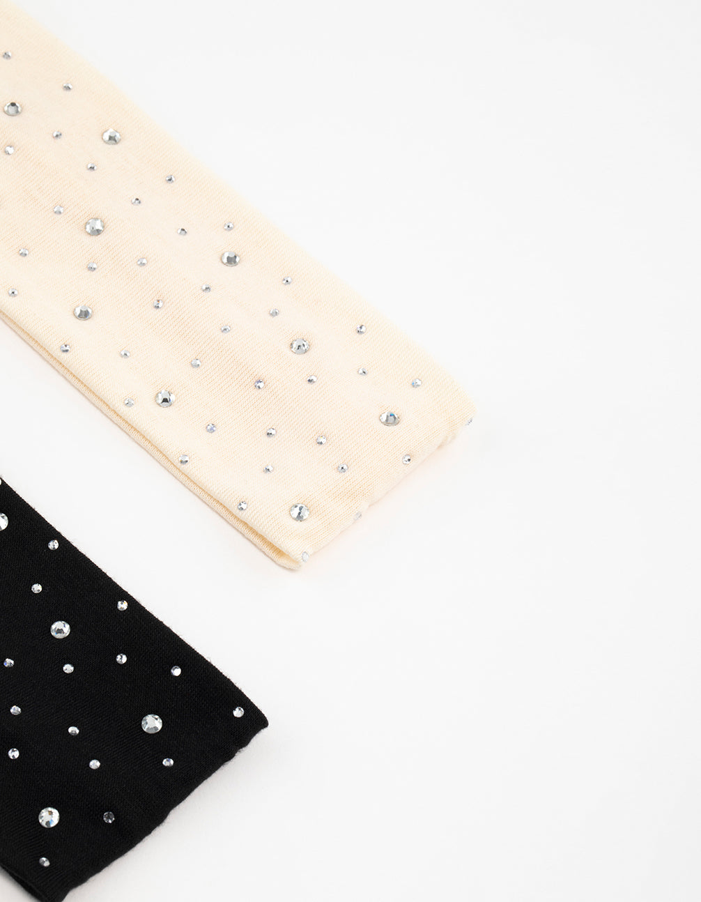 Black & Cream Fabric Diamante Stretch Headbands 2-Pack