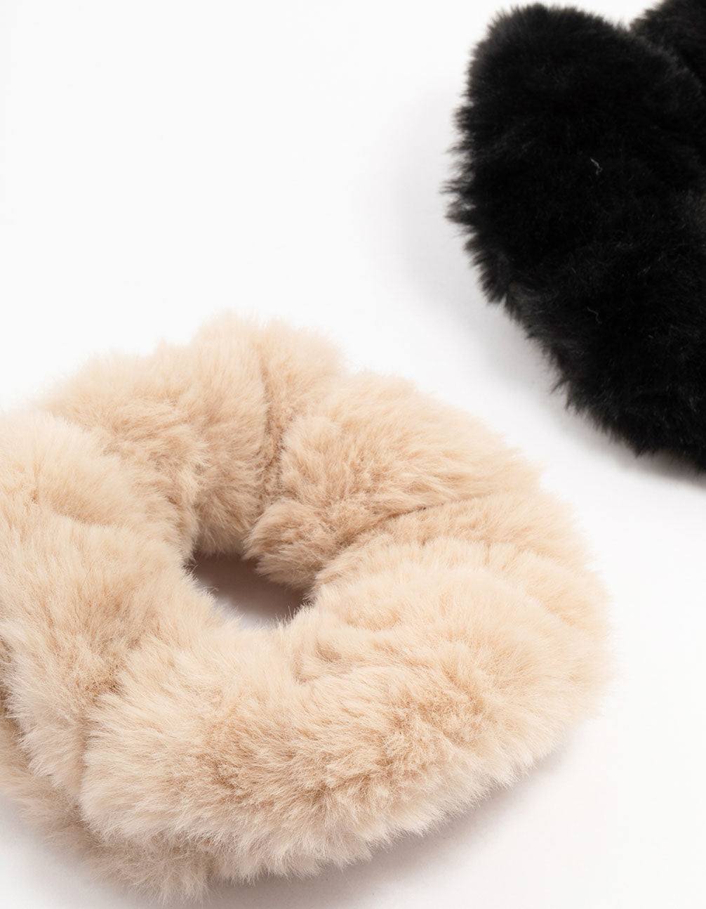 Black & Pink Faux Fur Scrunchies 2-Pack