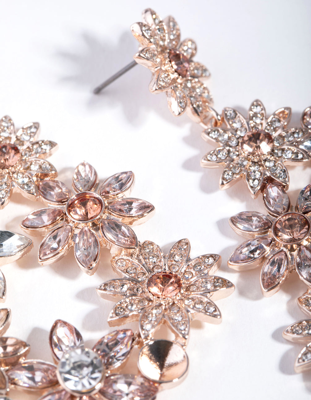 Turn heads with these chic, fashion-forward earrings. They're rose-gold toned, and feature a gorgeous flower design that's comprised of blush-hued, sparkling, cystal-like stones. Wear them with other blush tones for a luxurious look.