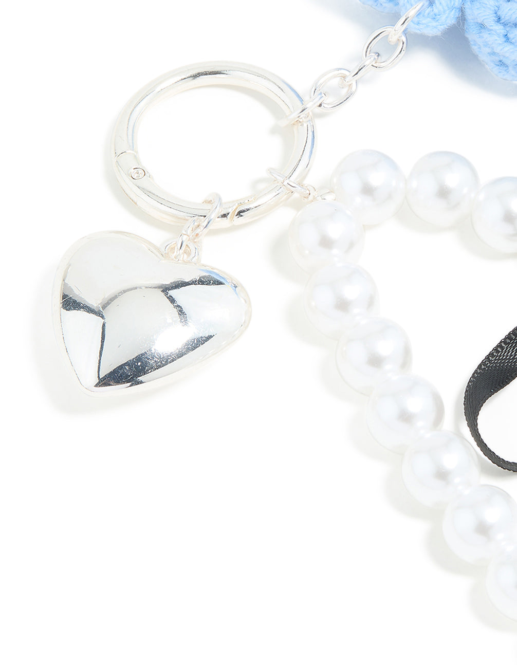 • Blue Crochet Fabric Daisy & Pearl Key Chain - link has visual effect only