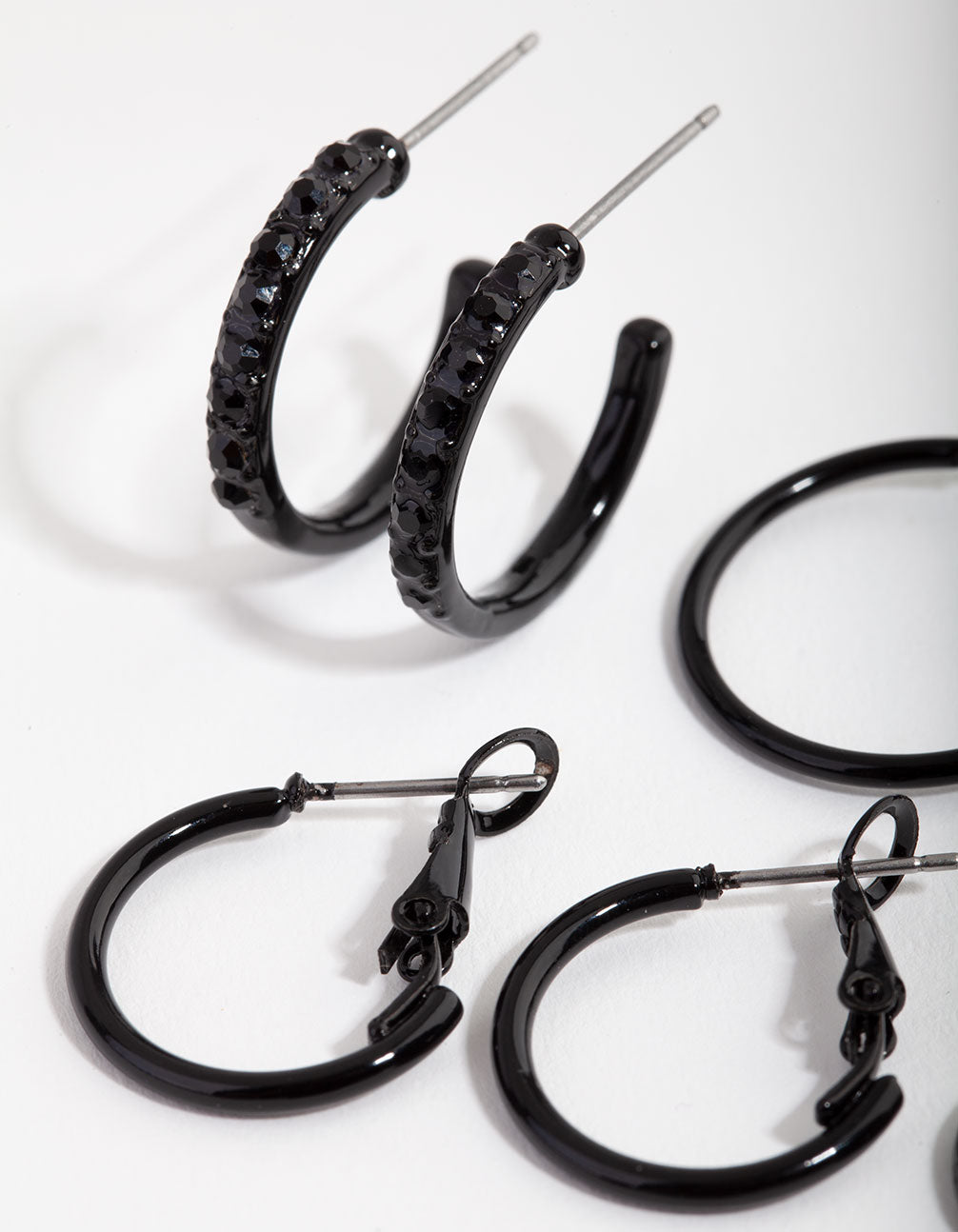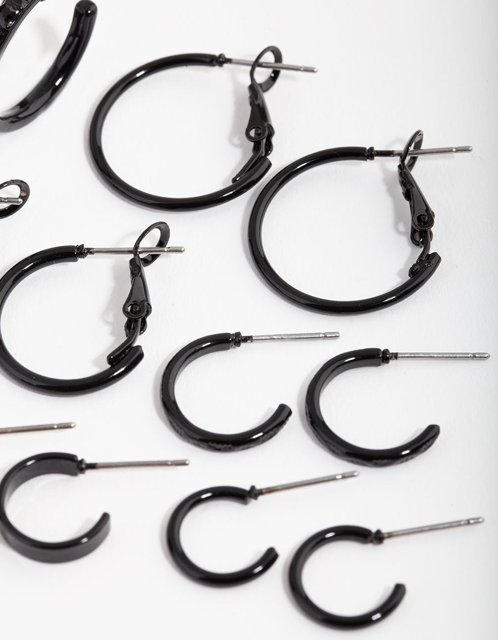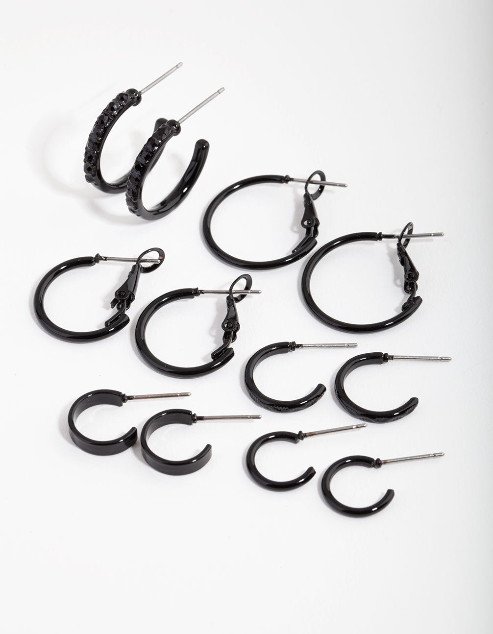 Almost any outfit can be elevated with a pair of hoop earrings! This pack includes six sets of matte black hoop earrings in varying sizes, perfect for any occasion. Wear them individually or stack them together for a dramatic look.