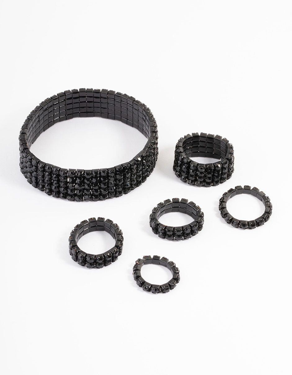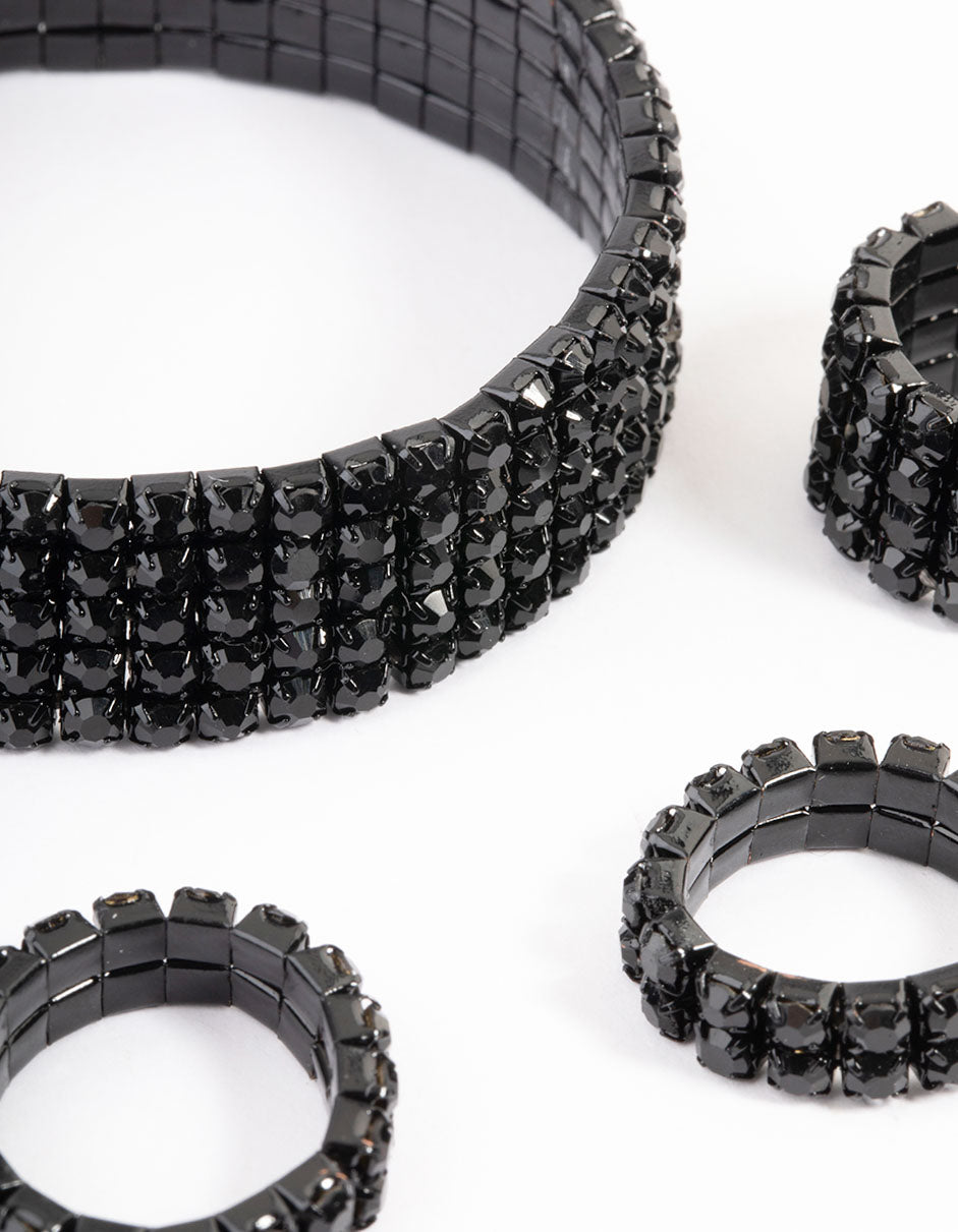 Gunmetal Diamante Cupchain Bracelet & Ring Set