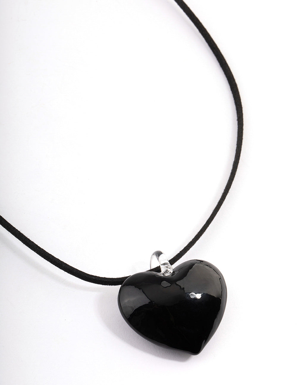 For an effortlessly chic look, explore pieces from our stylish 'Black on Black' Collection! Style this large, puffy heart necklace with a pair of black heart studs for a lovable look.