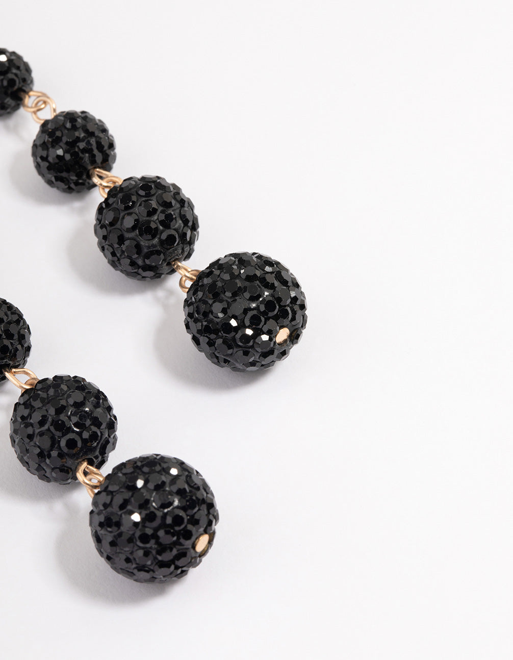 These black-coloured drop earrings feature a triple ball design that adds drama and flair to any outfit. Style these earrings for a formal occasion with a matching black statement necklace, or keep things pared back by wearing them on their own.