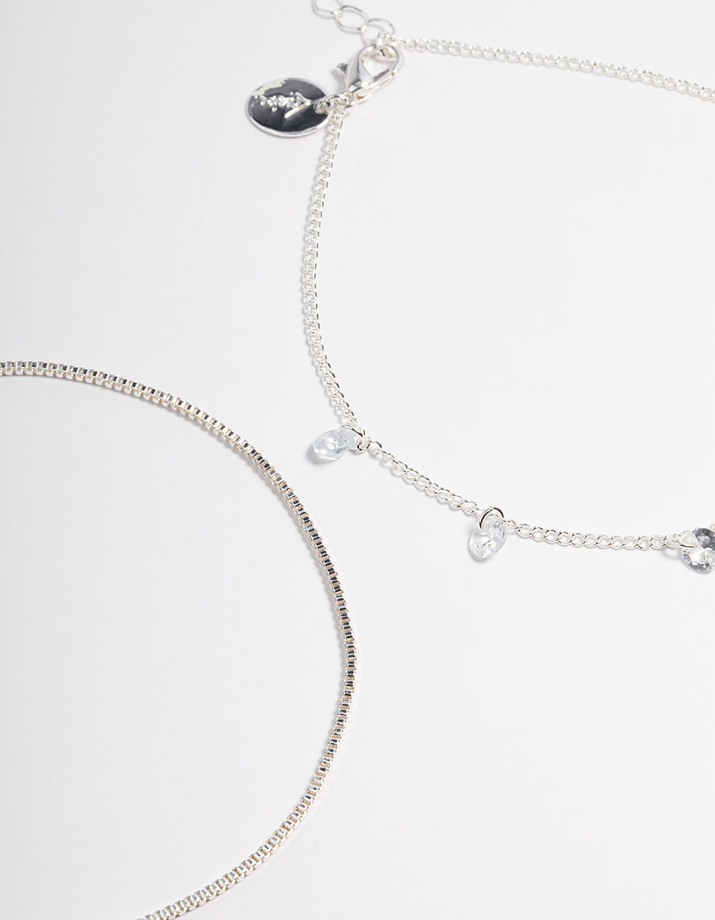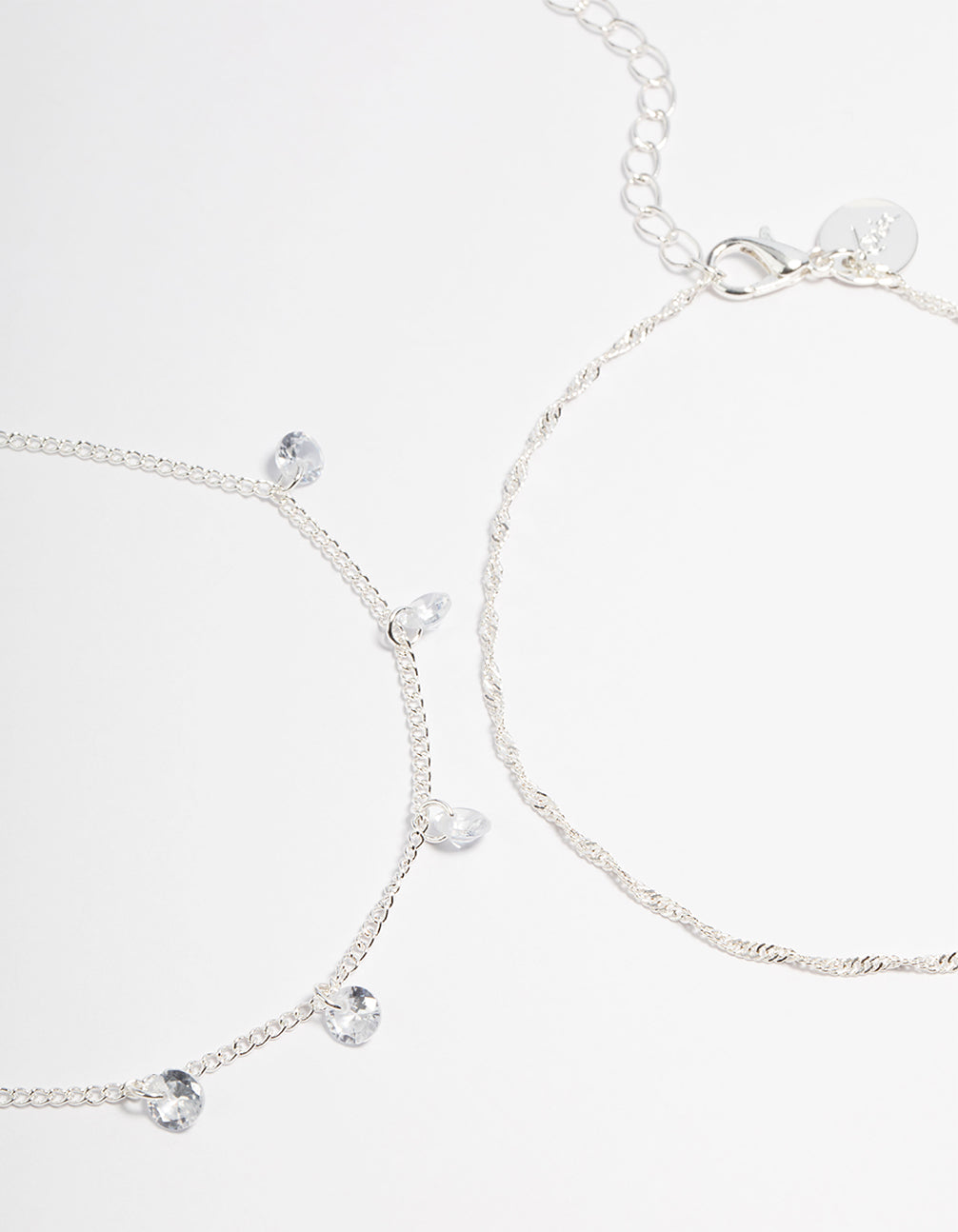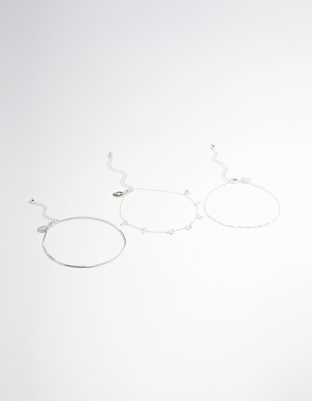 Take your outfit to the next level with embellished anklets! This pack includes three silver-toned anklets with cubic zirconia embellishments. Wear them with heels or sandals and shine from head to toe!