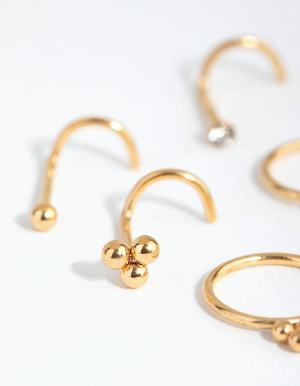 • Gold Surgical Steel Ball Cluster Nose Stud 6-Pack - link has visual effect only