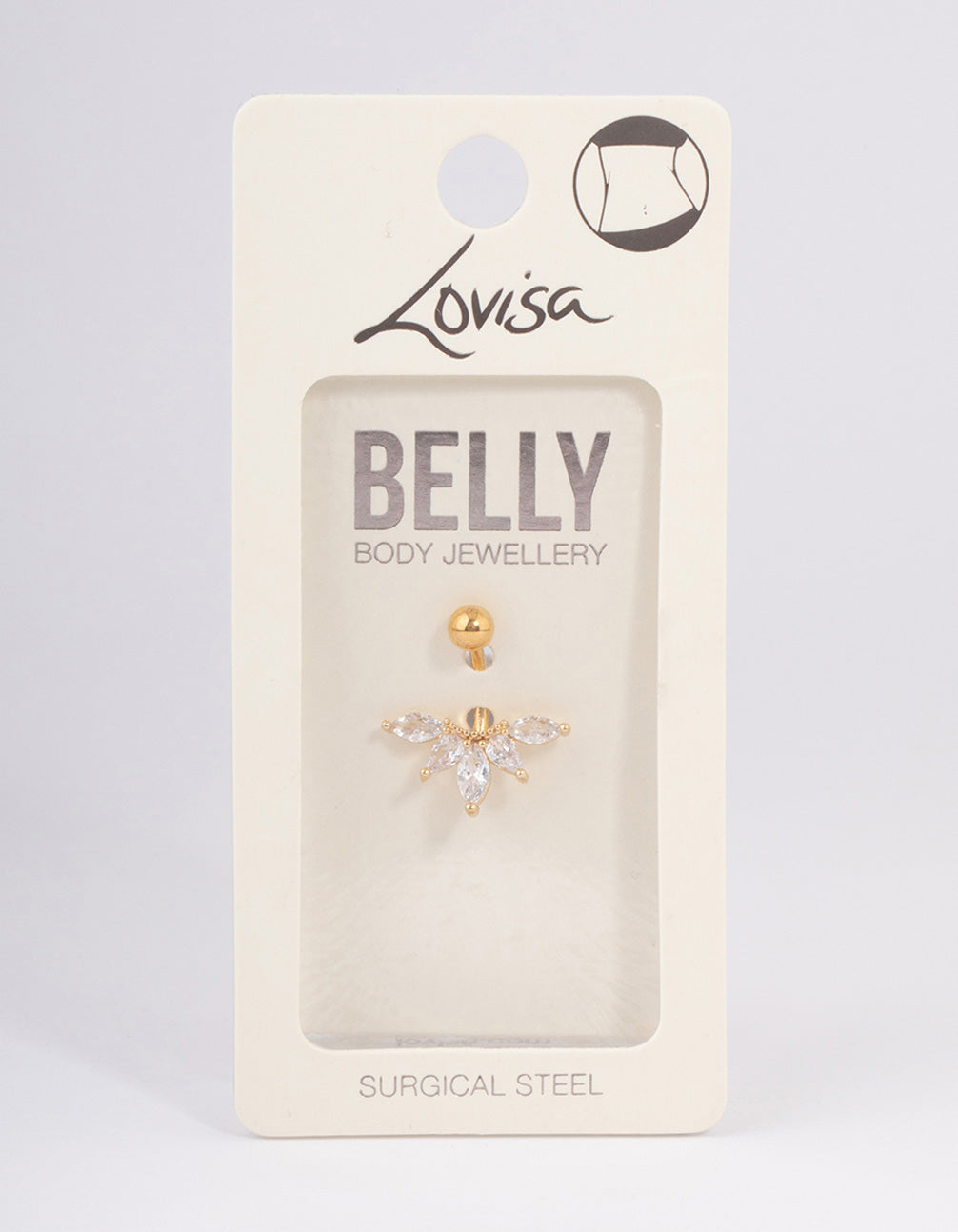 Gold Plated Surgical Steel Cubic Zirconia Marquise Fan Belly Ring