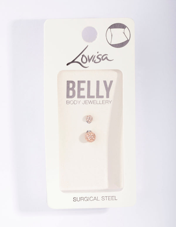 Body jewellery made with surgical steel and trend-focused designs will add some personality to your look. Belly bars and rings are a fun way to show off your style and add something different to your vacation or poolside outfits. This belly bar comes with a multi diamante embellished design in pink