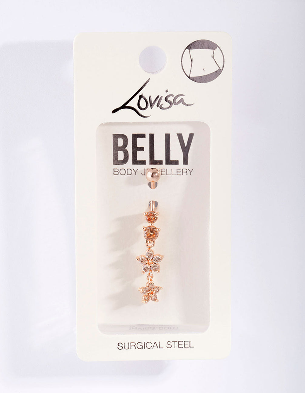 Rose Gold Surgical Steel Floral Diamante Belly Bar