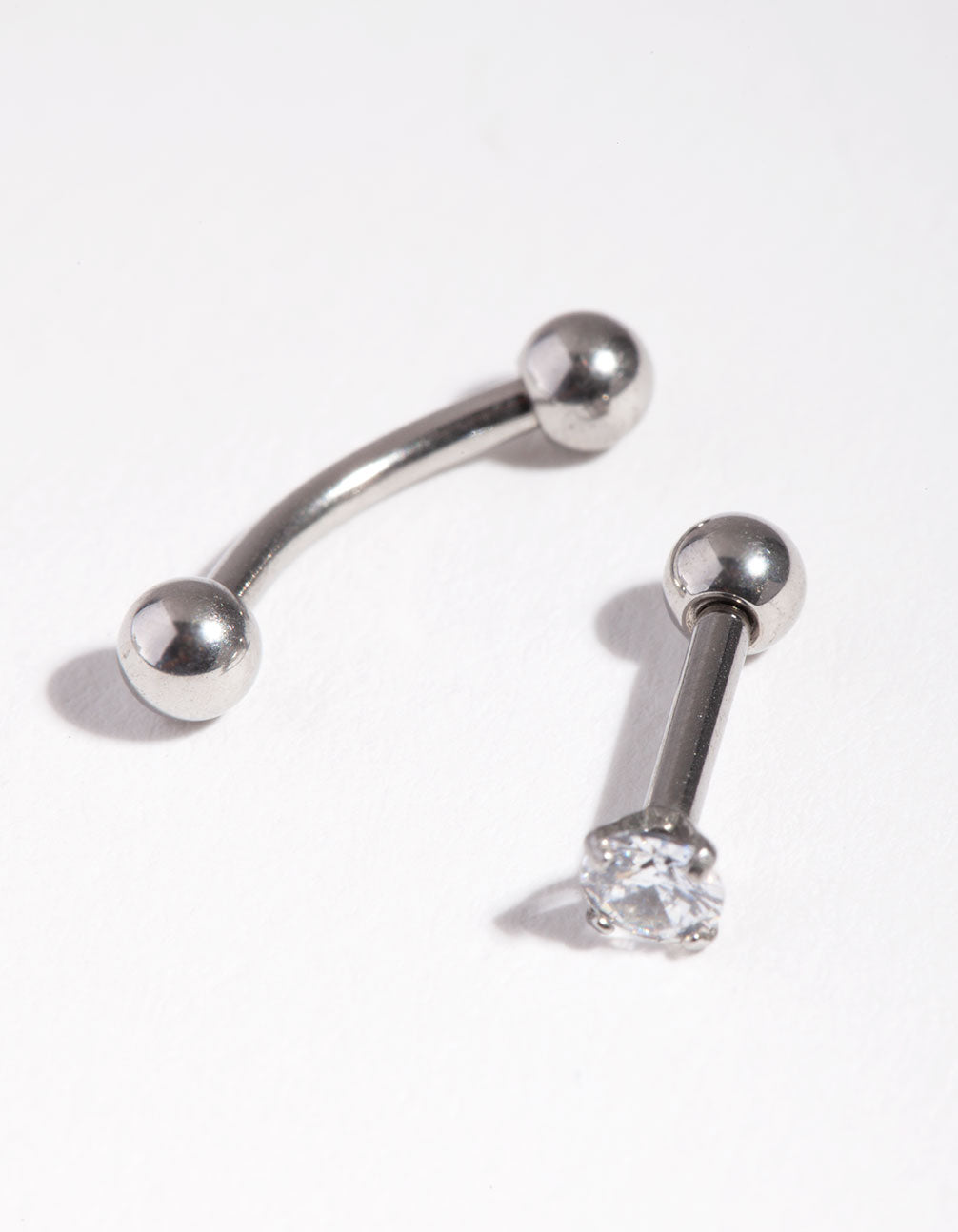 Mix up your look and show off the individual you are with Lovisa body jewellery! This 2-pack is made from silver-toned surgical steel. It has a gauge of 16, and a length of 1.2mm. It has a petite cubic zirconia gem, which sparkles with the brilliance of a true diamond.