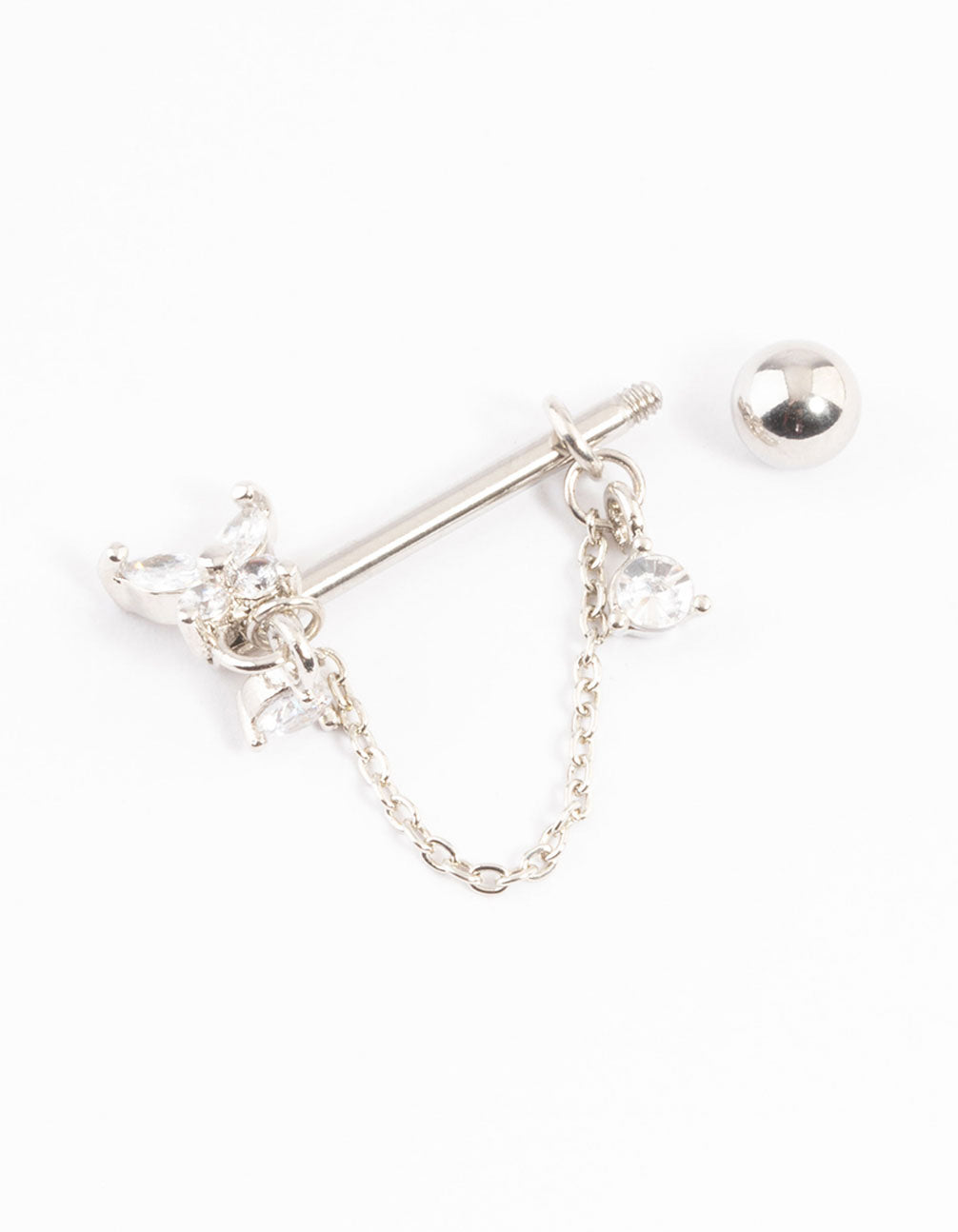 • Surgical Steel Butterfly Chain Nipple Piercing - link has visual effect only