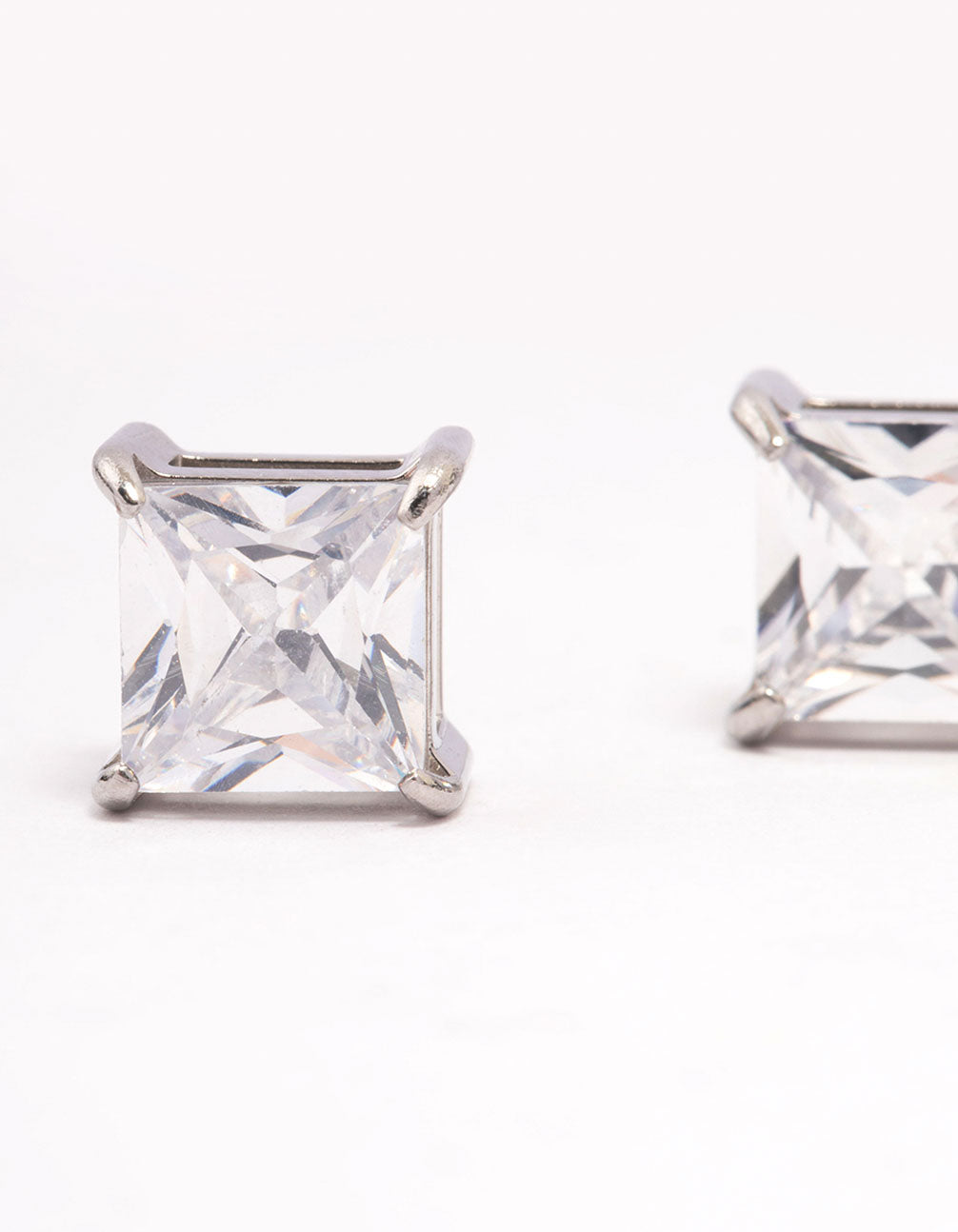 - These surgical steel stud earrings are embellished with cubic zirconia crystals in a square, cube shape for a modern finish.