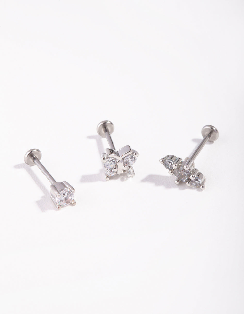 This silver-toned set features beautiful butterfly designs studded with diamantes. They have surgical steel posts.