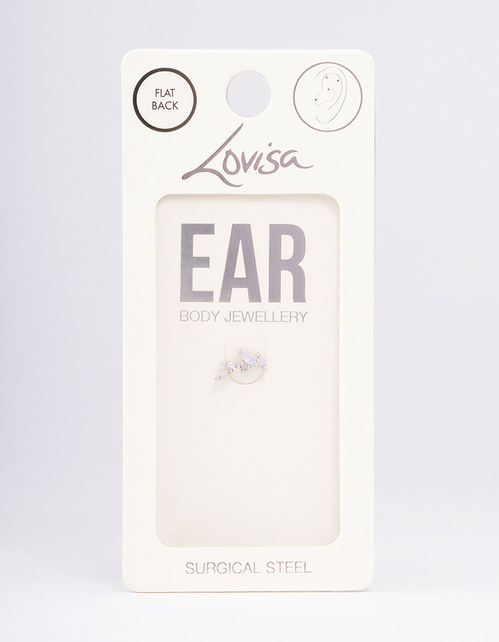 - This surgical steel flat back piercing features a lilac, marquise crystal design for an embellished finish. Style this flat back as a helix, cartilage or tragus piercing.