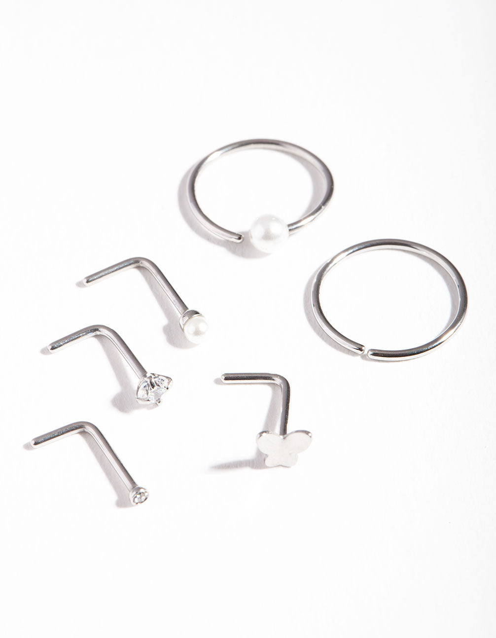 Surgical Steel Pearl Butterfly Nose Ring 6-Pack