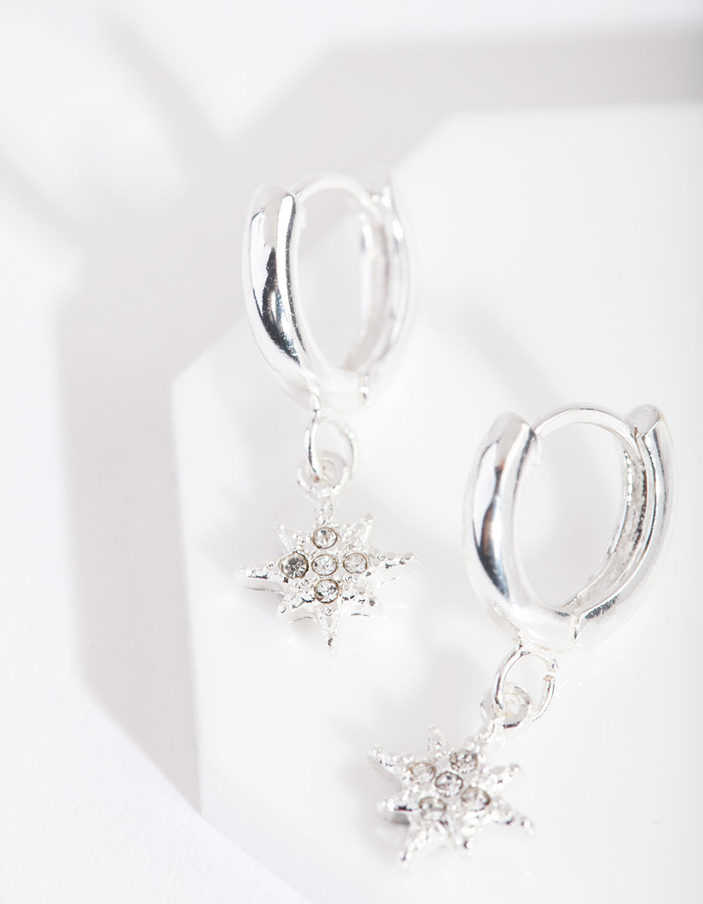 Stack up the style with these huggie earrings! This pair features a silver-toned diamante embellished star charm design. Wear them on their own for an elegant look, or incorporate them into an ear stack for maximum impact!
