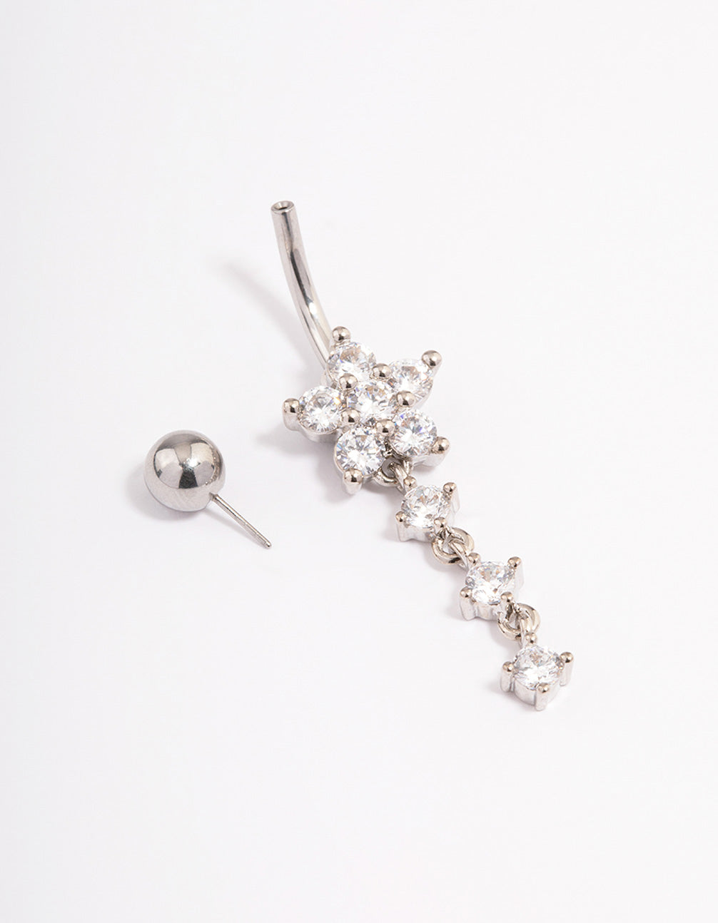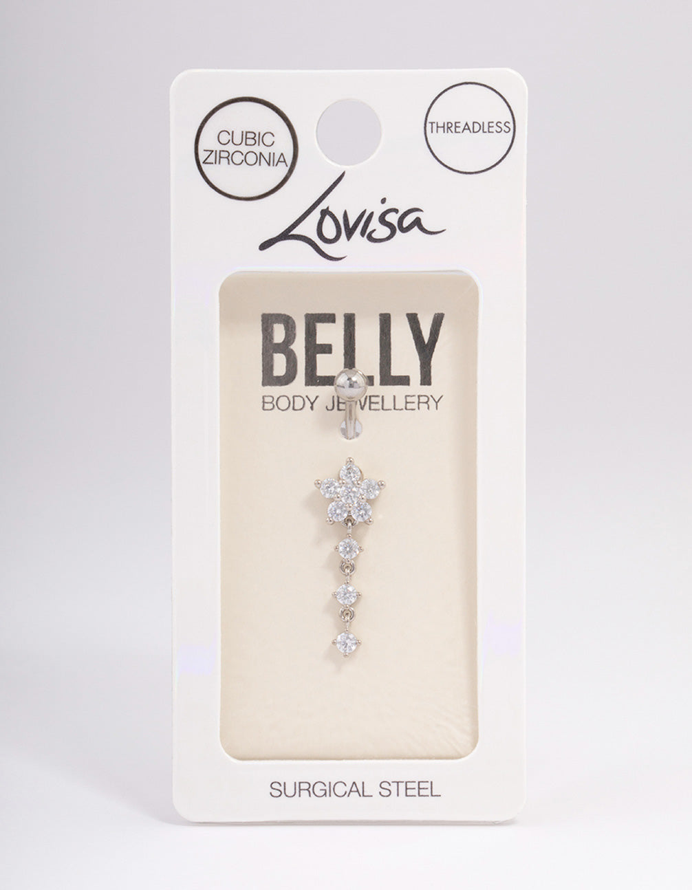 Surgical Steel Cubic Zirconia Flower Drop Threadless Belly Bar Surgical Steel Cubic Zirconia Flower Drop Threadless Belly Bar Surgical Steel Cubic Zirconia Flower Drop Threadless Belly Bar