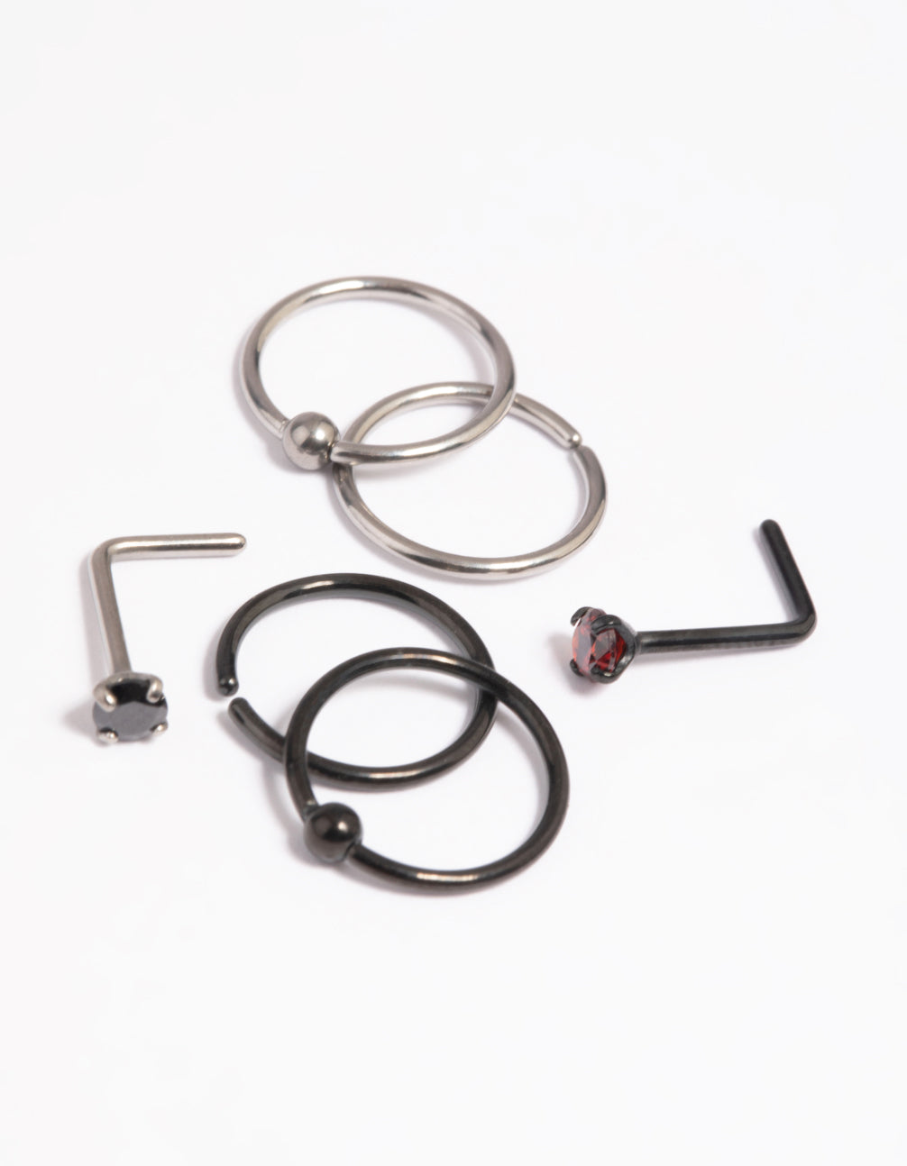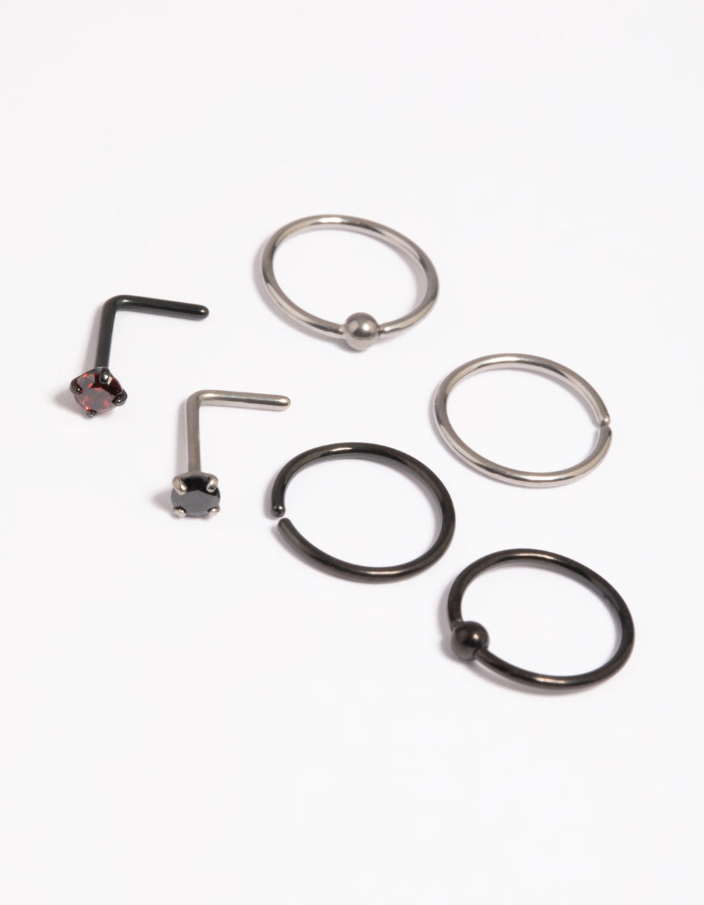 Show off your individuality with Lovisa body jewellery! Our premium body jewellery is made with quality titanium to avoid skin irriation and ensure pieces are comfortable for day-to-day wear. This pack features mulitple nose studs. They measure 20G/0.8mm.