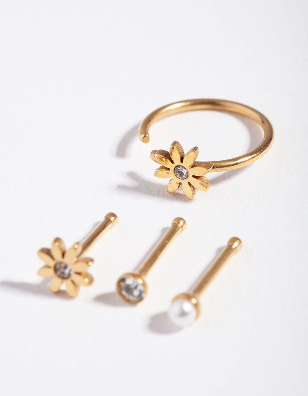 Surgical Steel Gold Flower Pearl Nose Stud 4-Pack