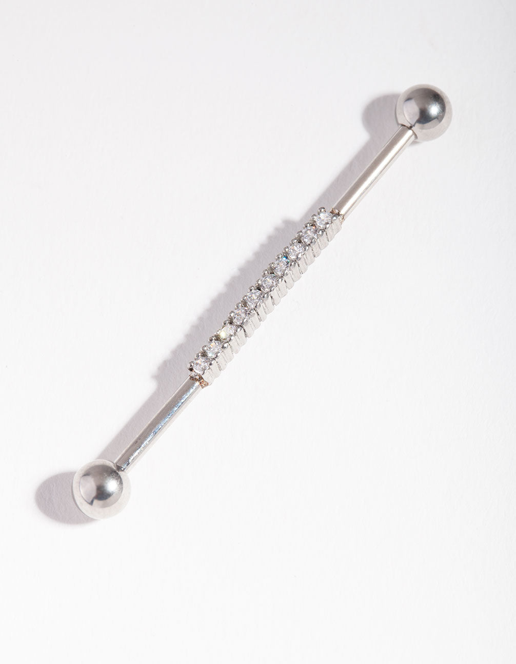 Add a cool edge to your look with this industrial bar piercing. On a silver-toned setting, this piercing is adorned with stunning cubic zirconia stones. Lovisa body jewellery is made from surgical steel, so it's safe to wear and gentle enough for daily use. Size: G14 / 1.6mm