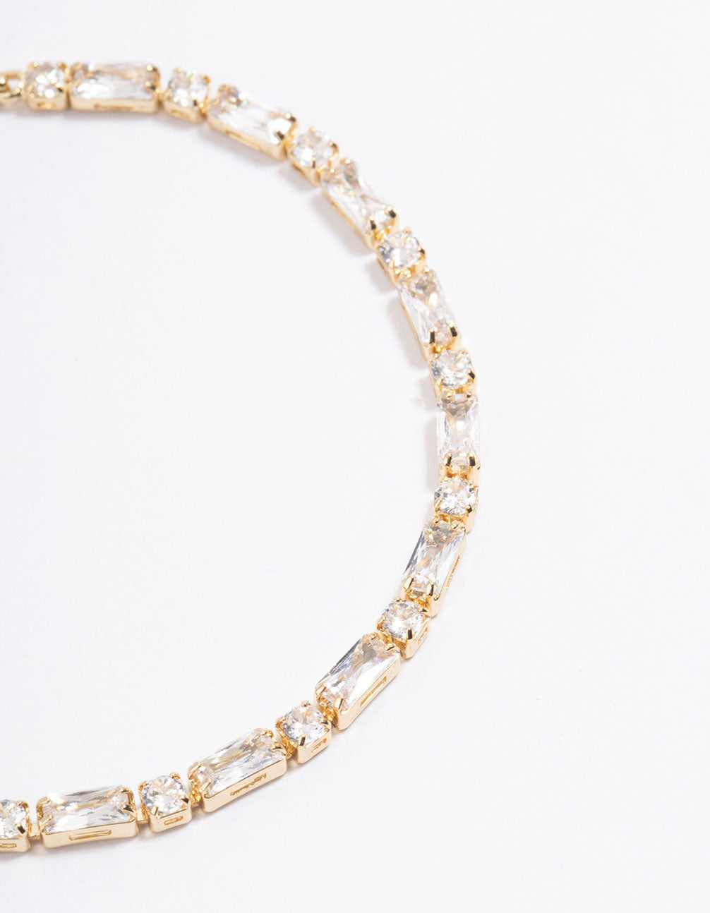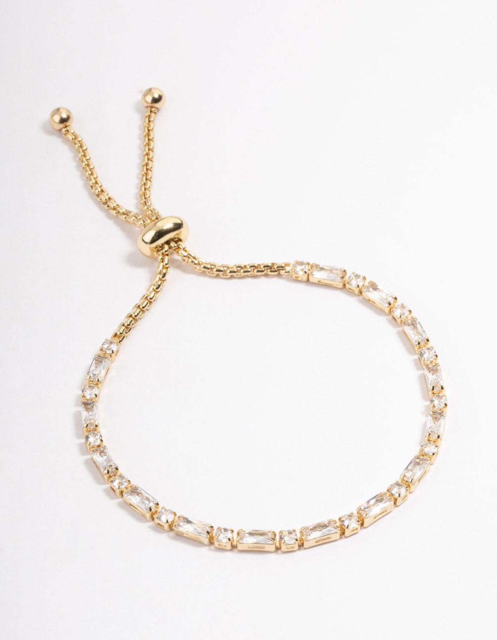 Gold Plated Baguette Stone Toggle Tennis Bracelet